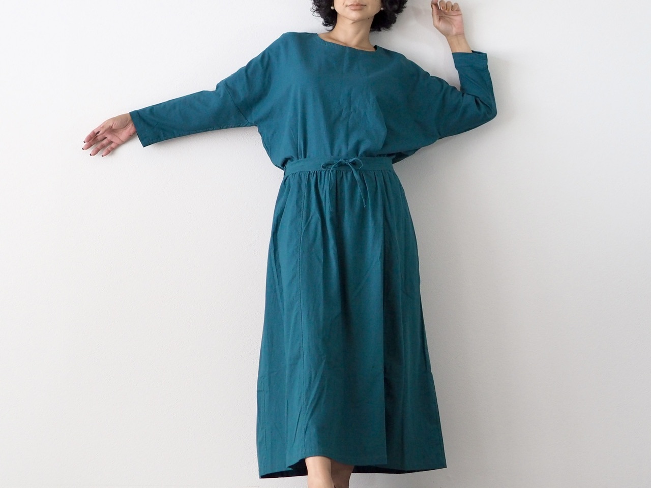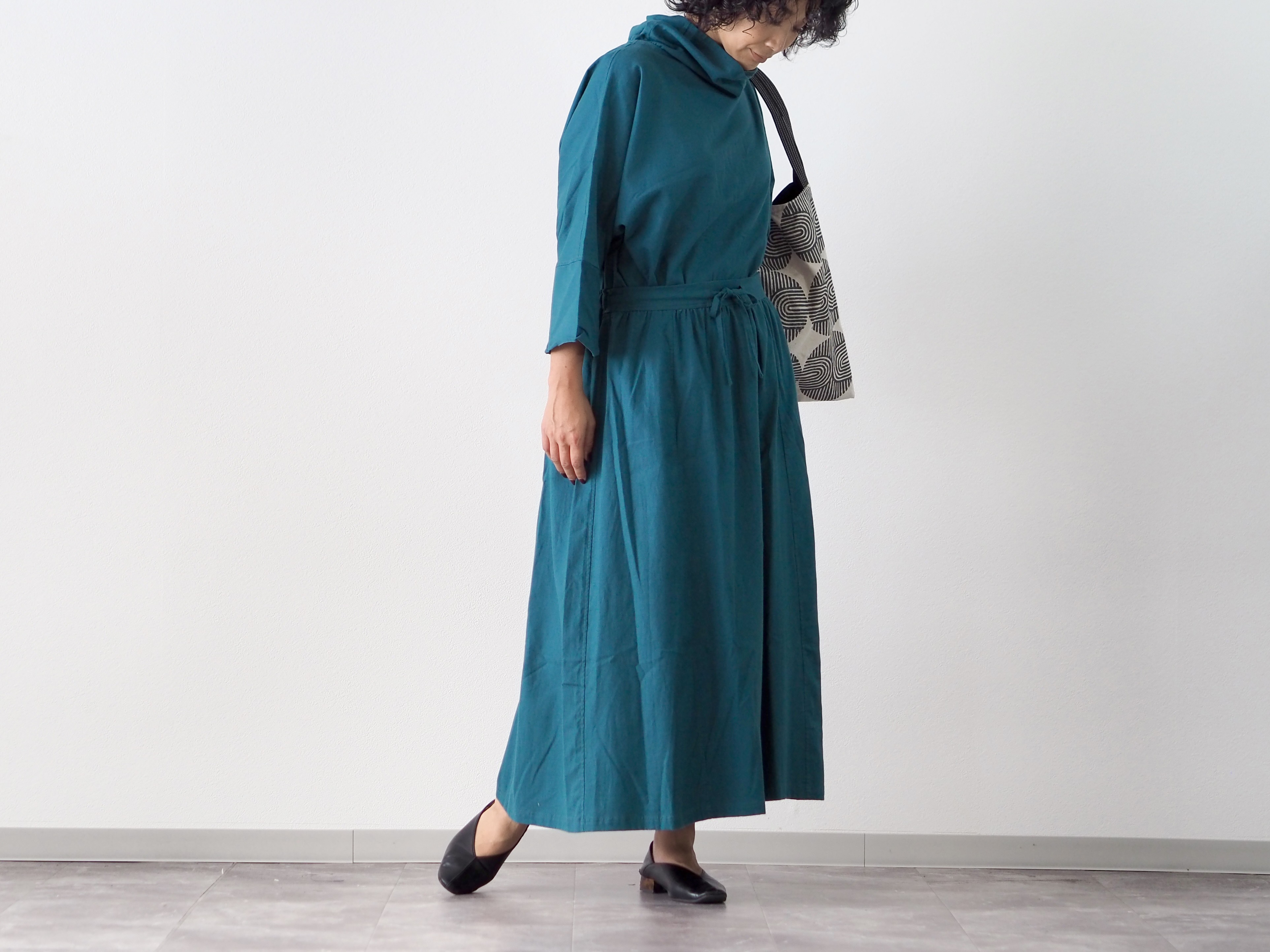 セットアップで着て、ウエストinすると、ワンピースのような着方も楽しめます。