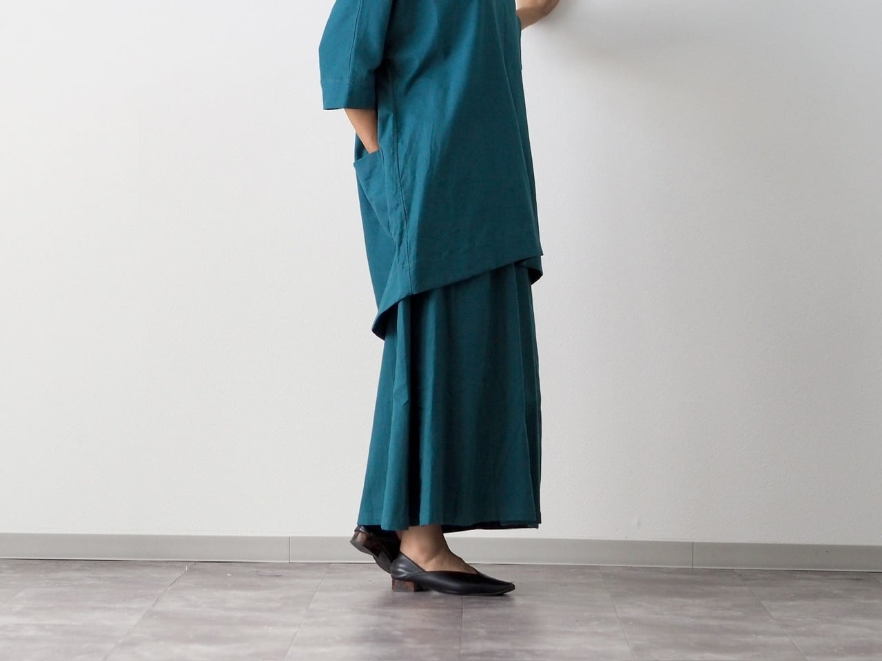 ⚫︎四枚ハギで裾に向かってゆるやかに広がるシルエットです。