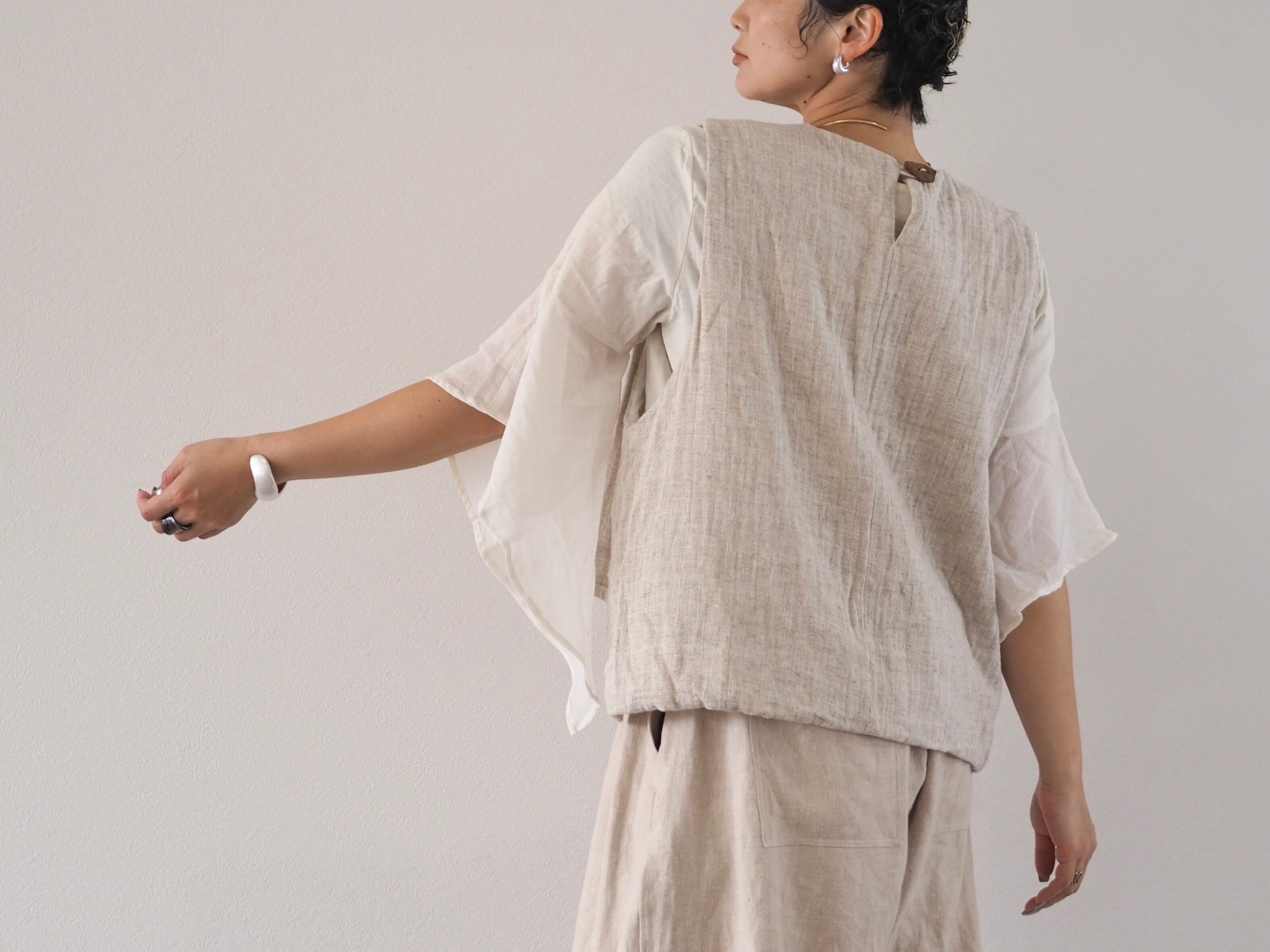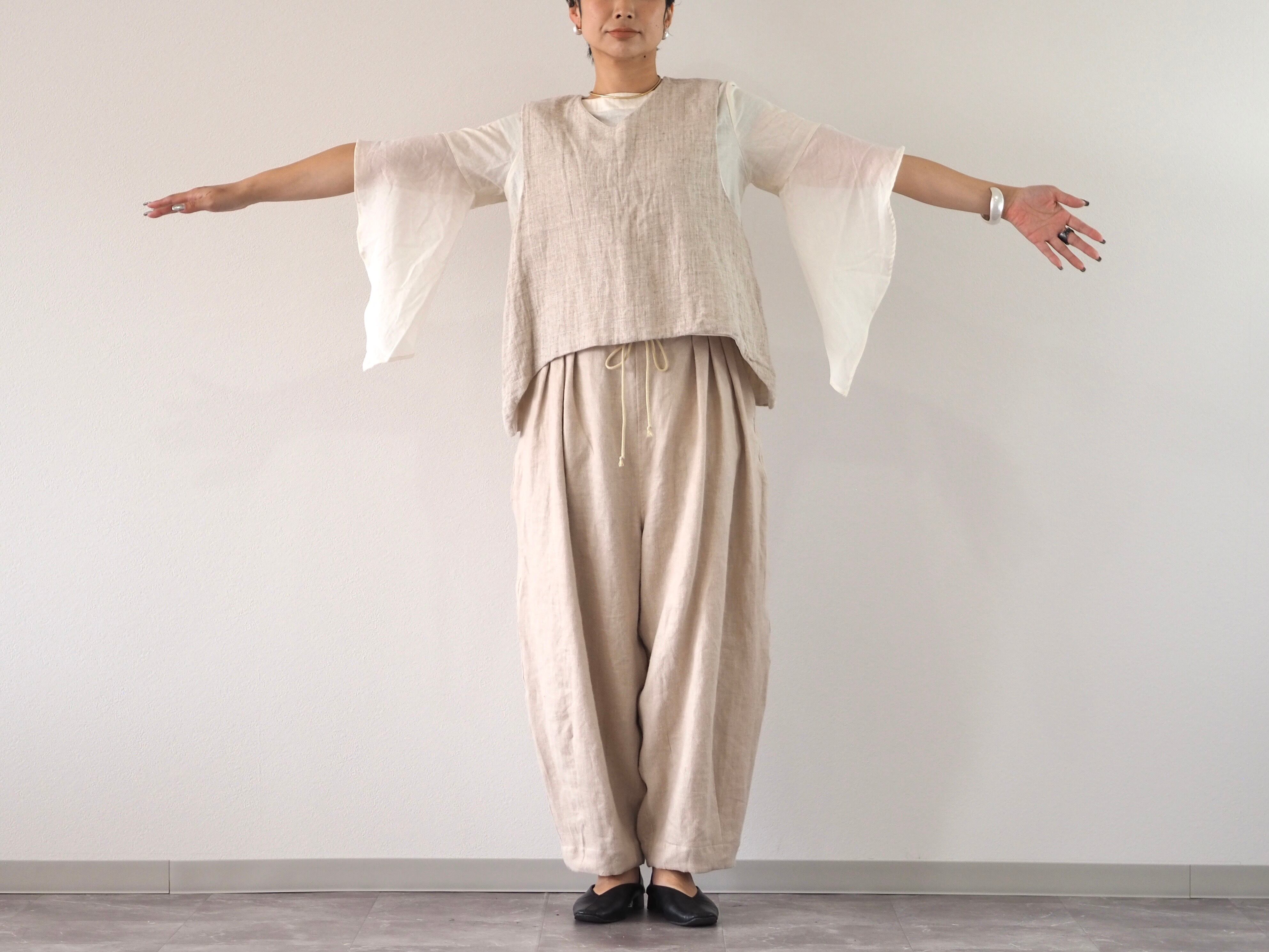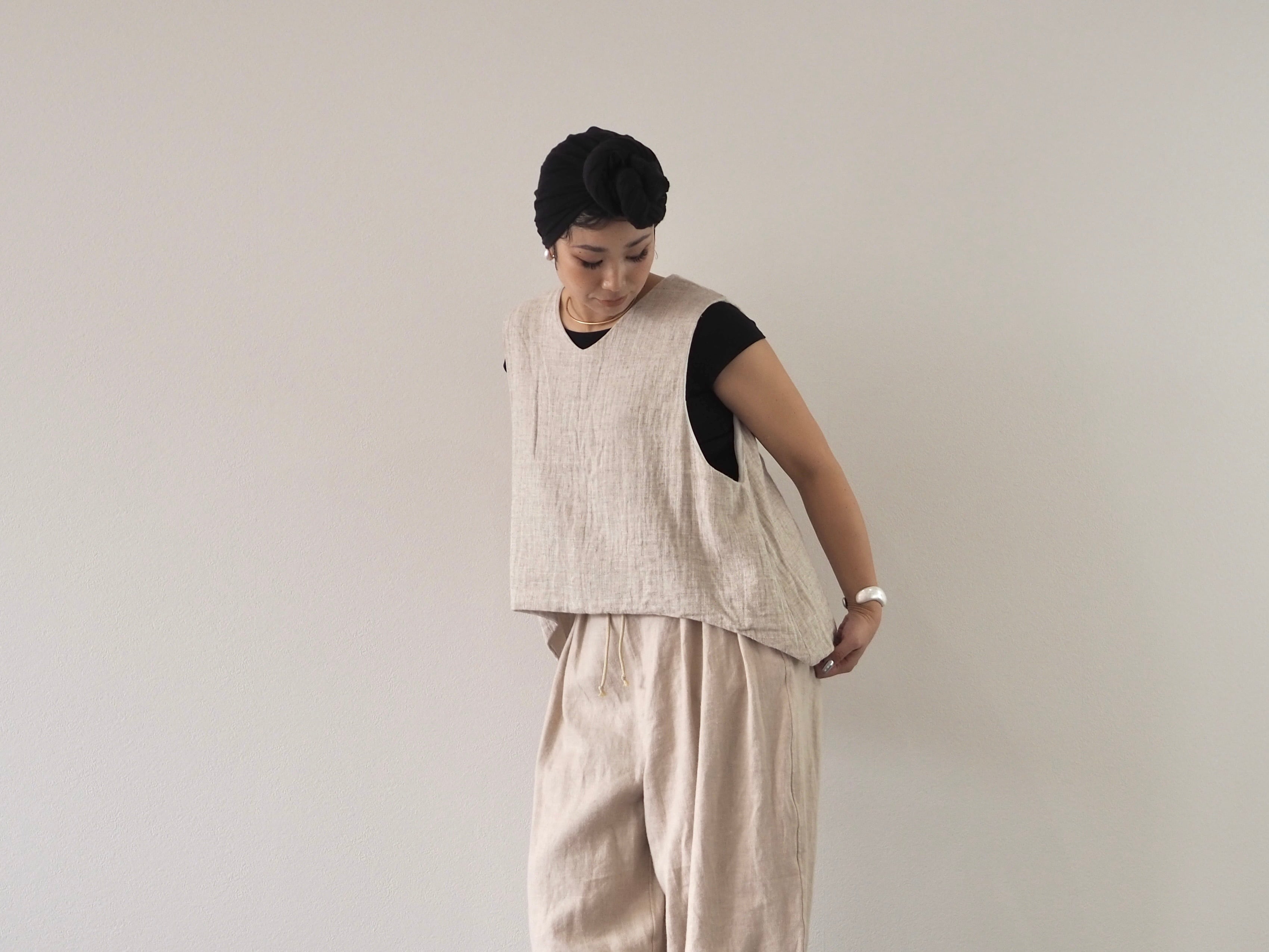 上⇧2枚は春夏向けのリネンコットン、ダブルガーゼのベスト。