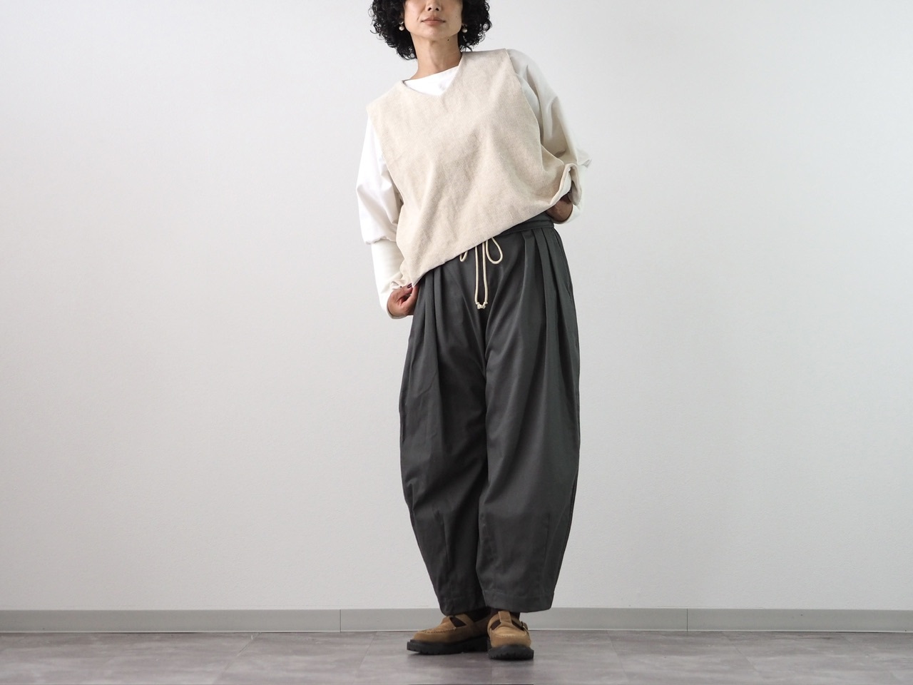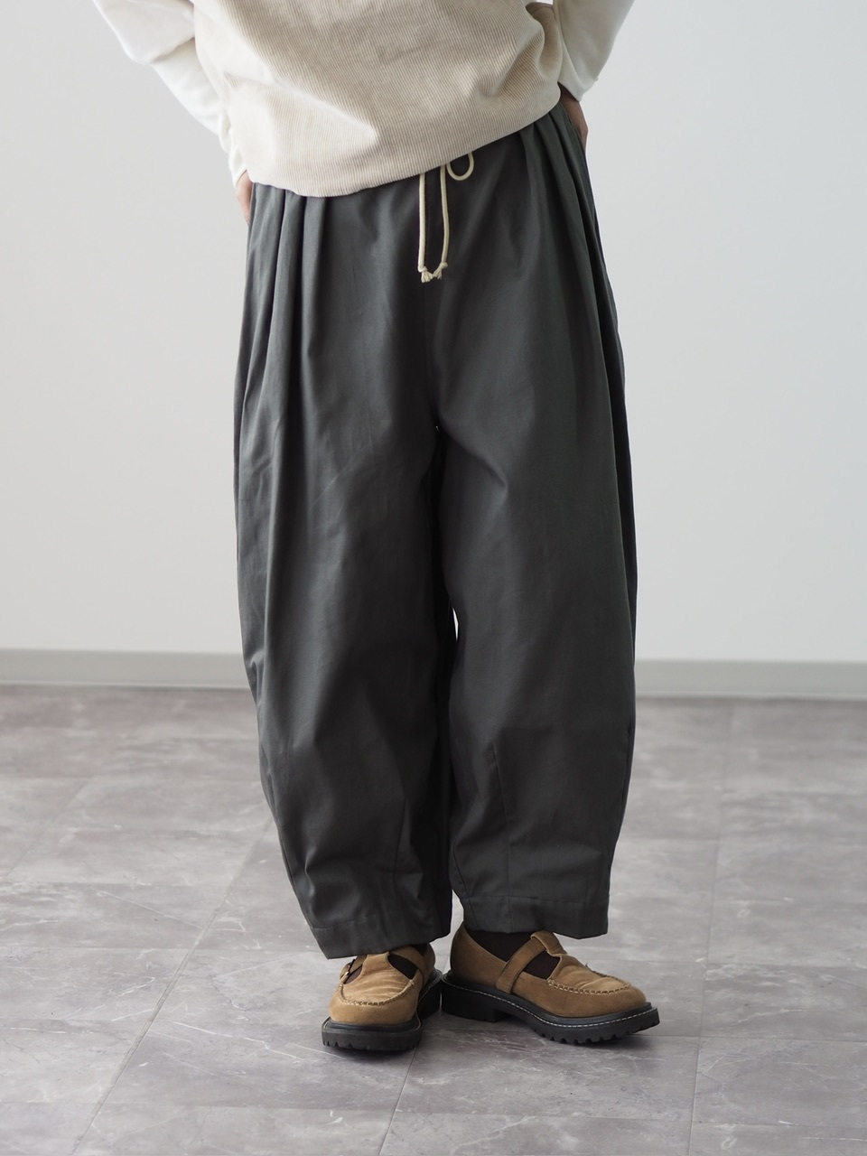 オールシーズン着用できる膨らみのあるシルエットが綺麗なサーカスパンツ。