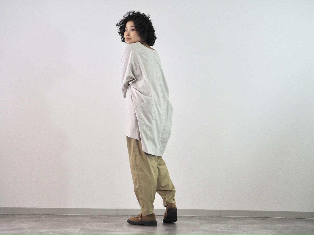 ②↓足首まで隠れる丈感。スッキリとしたシルエットです。