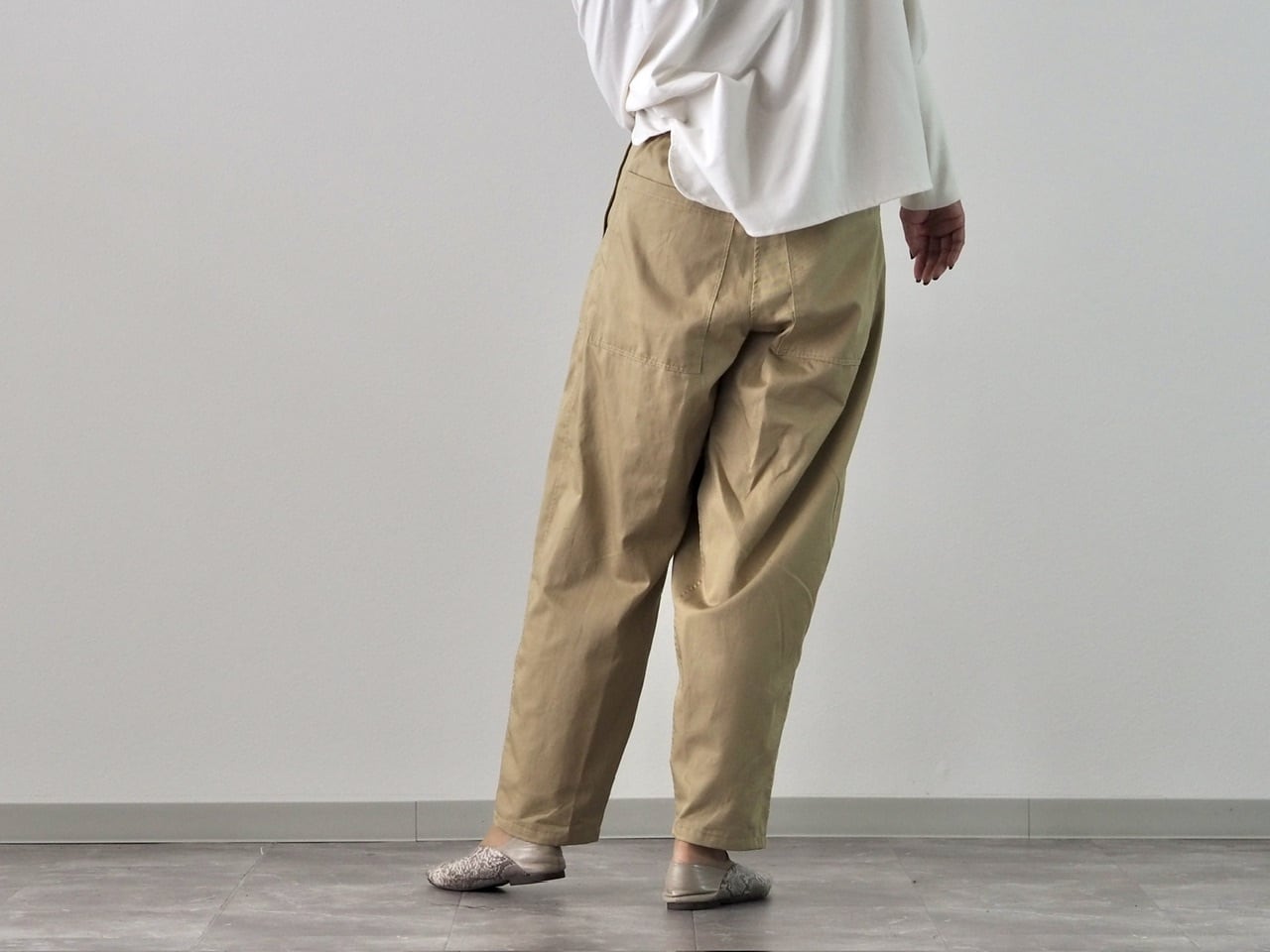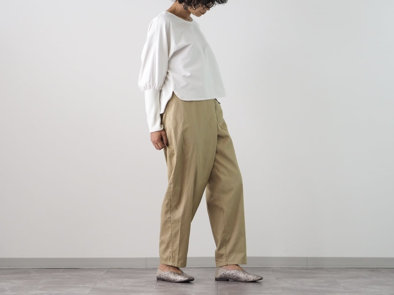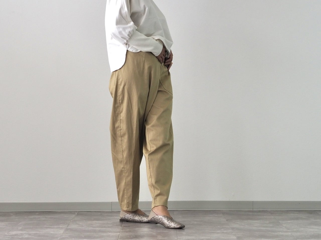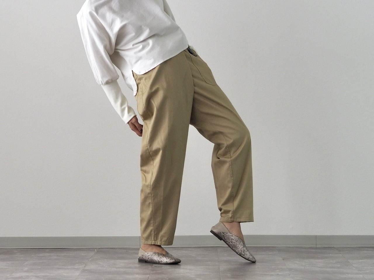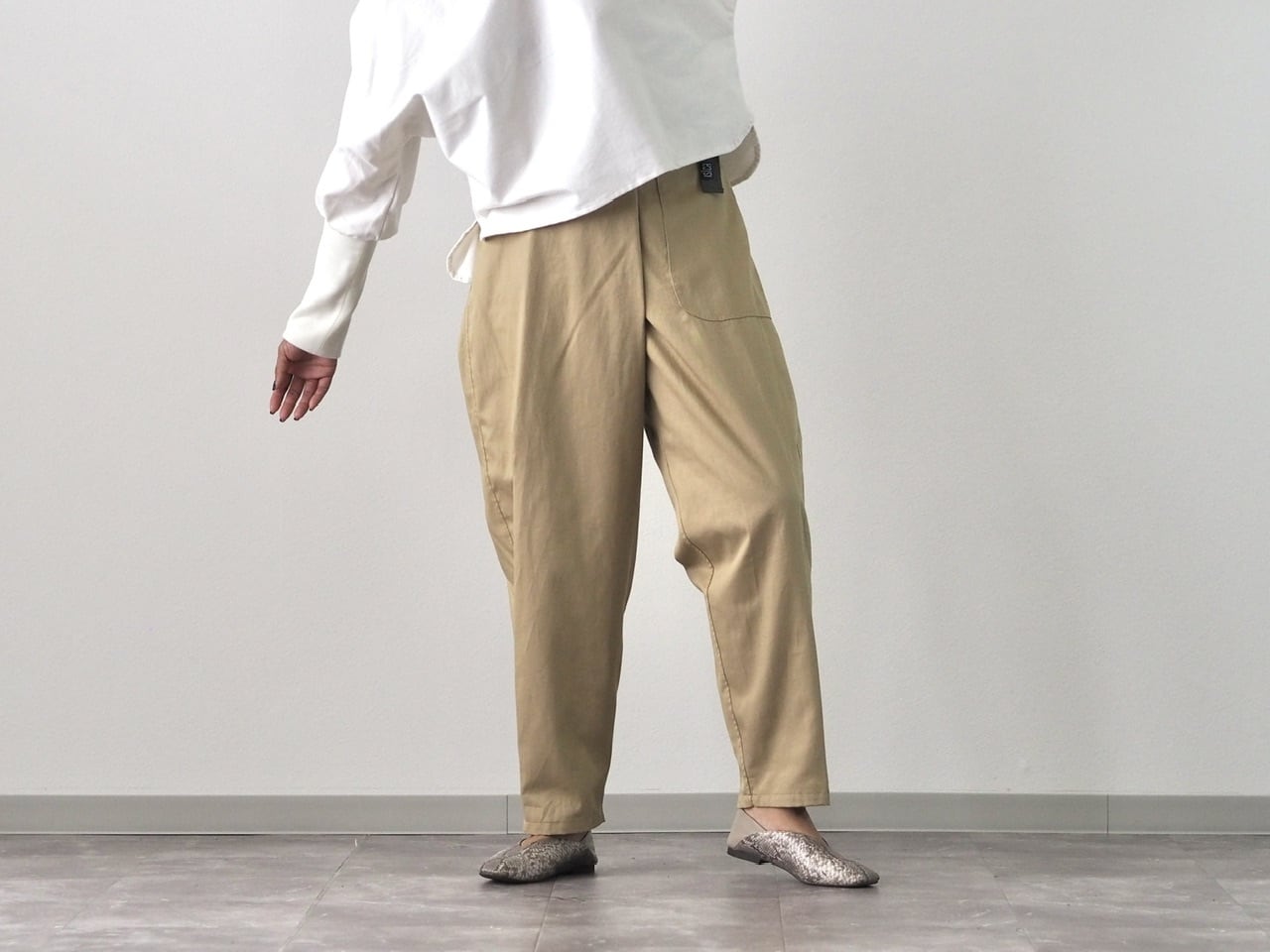 幅広いコーディネートが楽しめるテーパードパンツ。