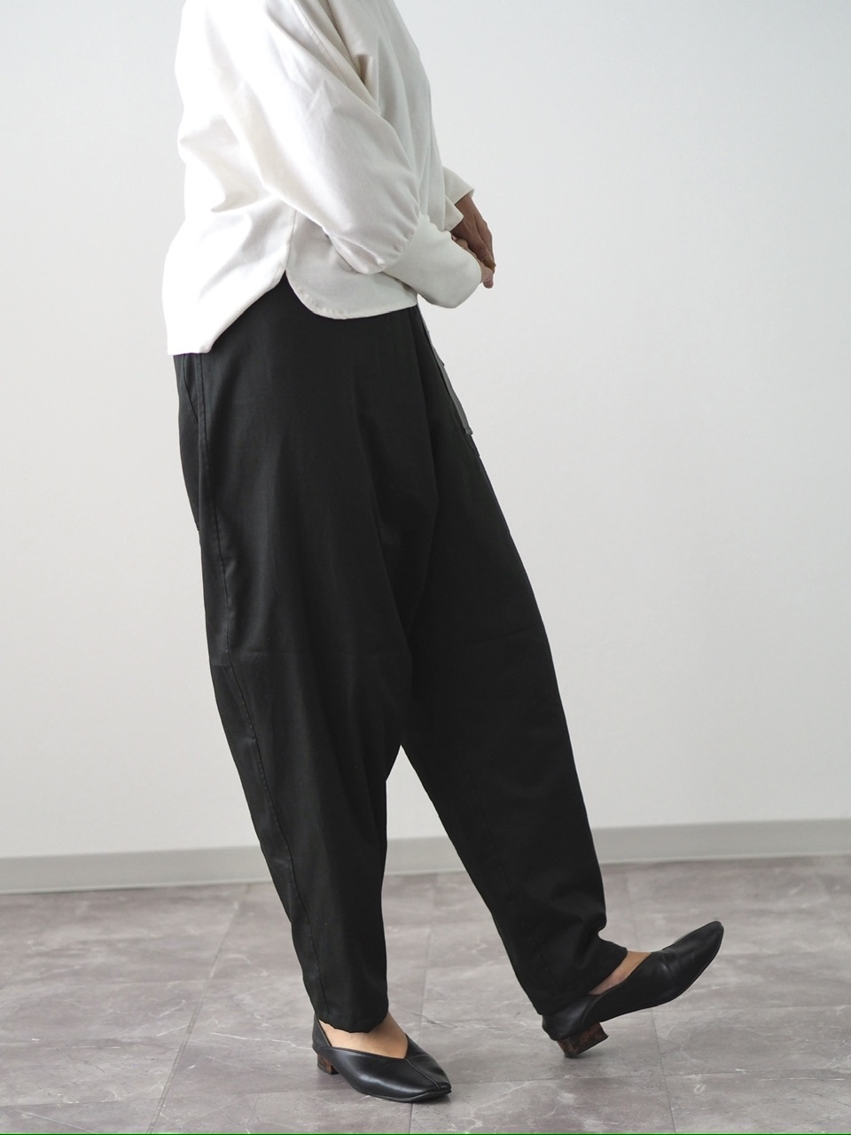裾にいくほど細くなるシルエット。シンプルで個性的。どんなお洋服とも合わせやすく、デイリーに活躍します。