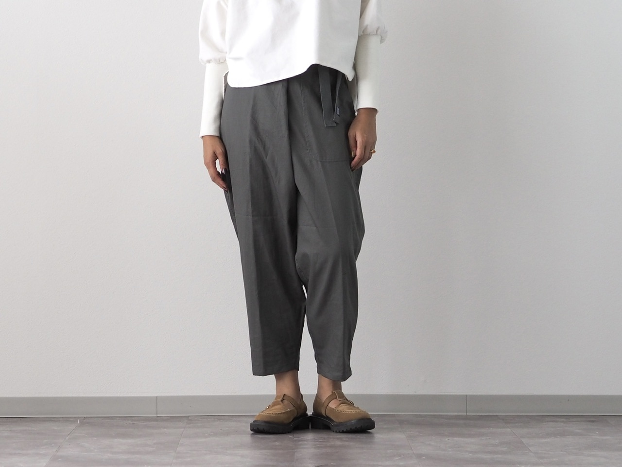 裾にいくほど細っそりとしたシルエットでスッキリと穿けます。
