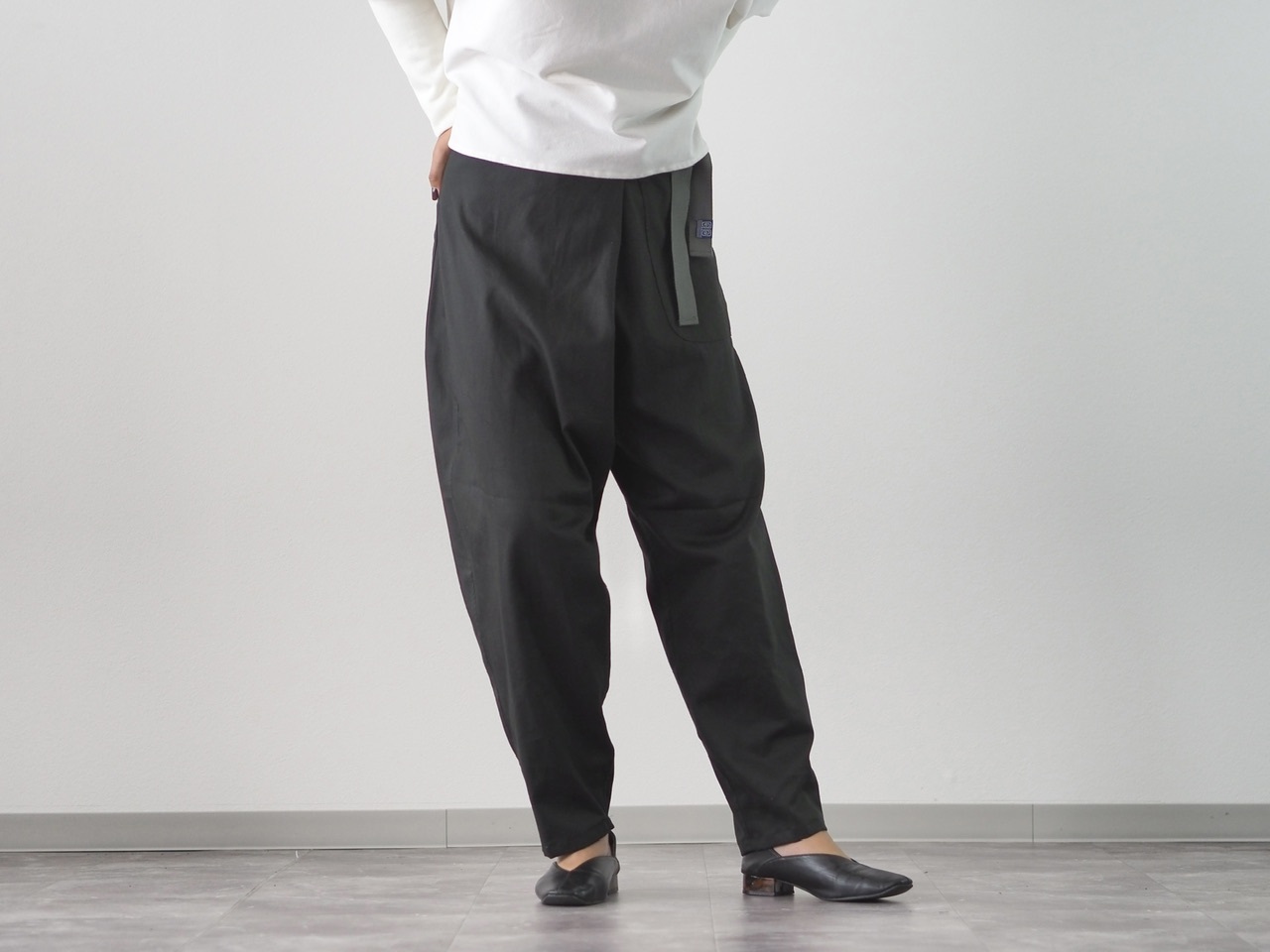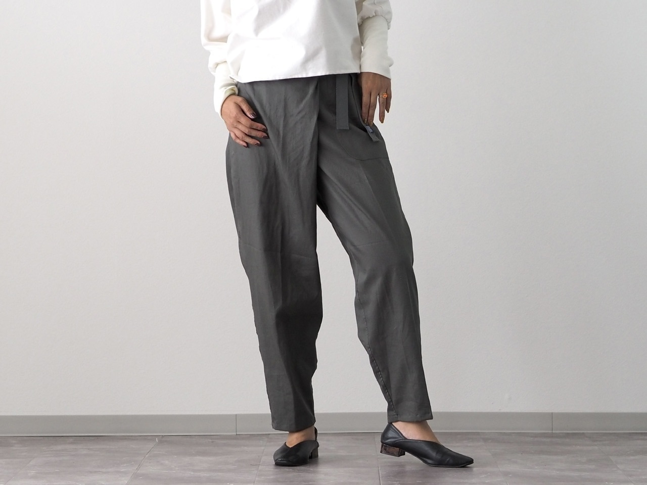 幅広いコーディネートが楽しめるテーパードパンツ。