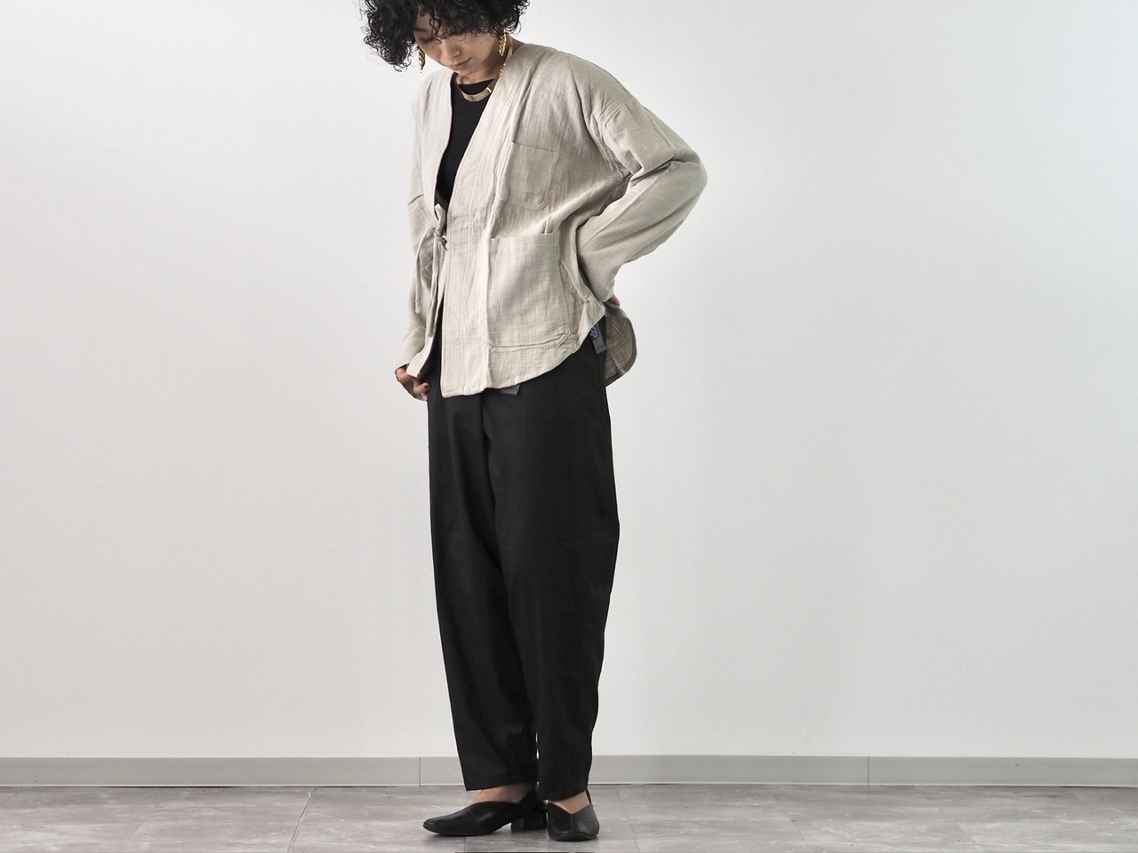 ①↑くるぶし上の着丈。軽やかな感じでスニーカーやサンダルでも合わせやすいです。