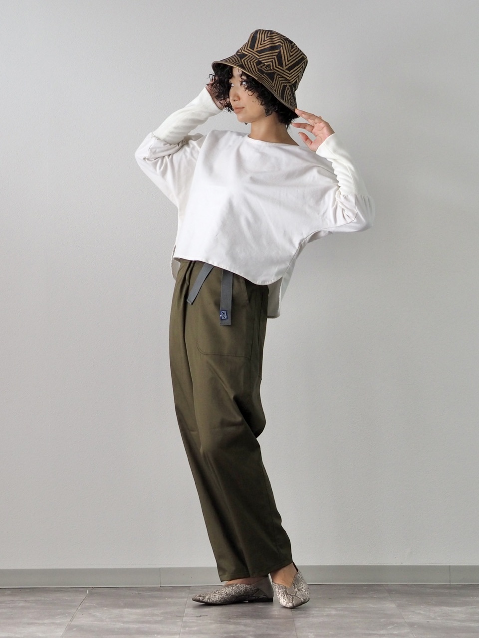 ①↑くるぶし上の着丈。軽やかな感じでスニーカーやサンダルでも合わせやすいです。