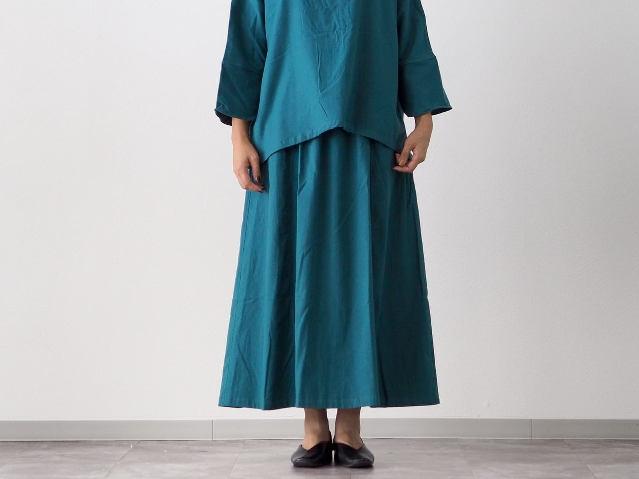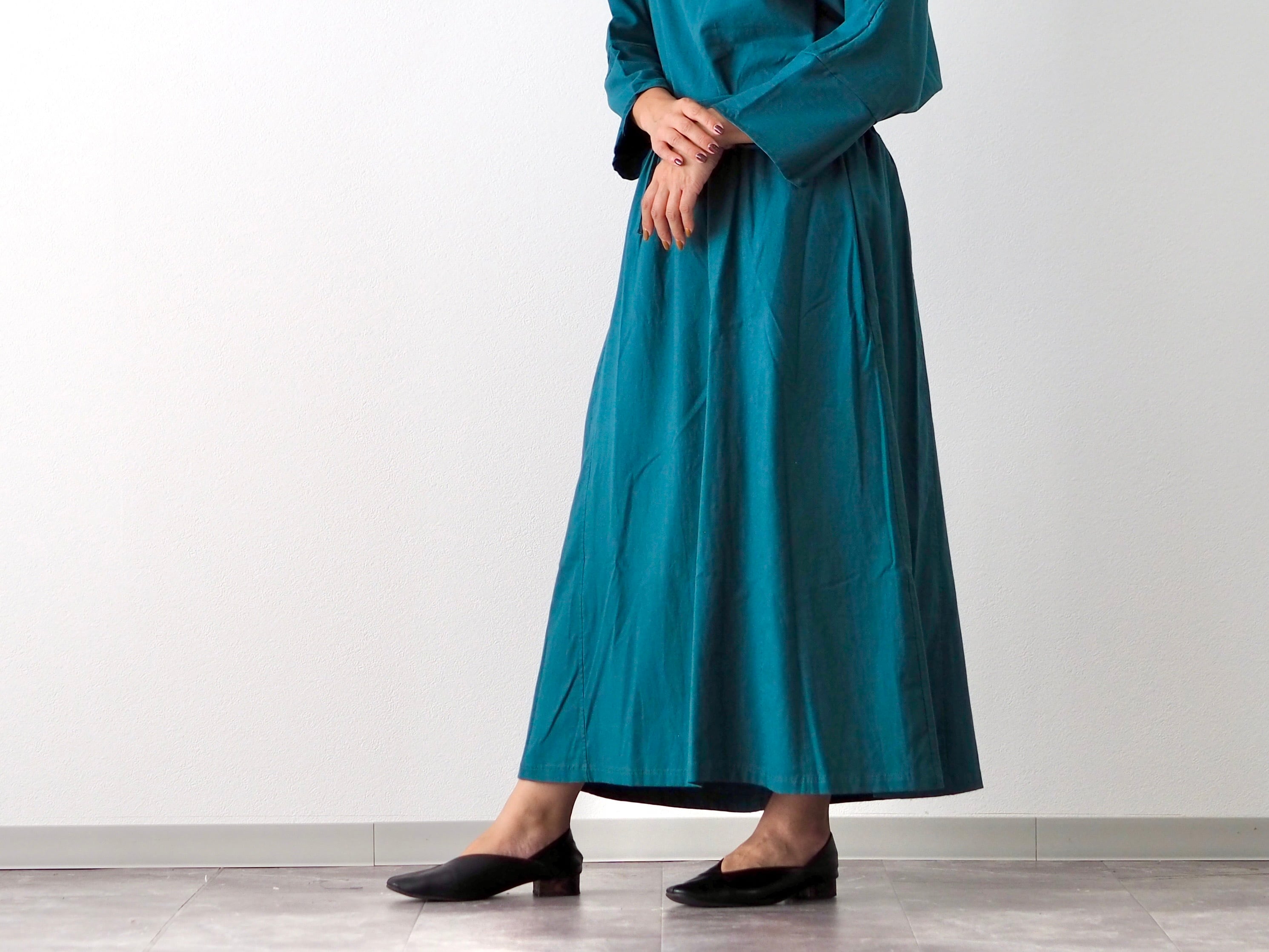 ⚫︎四枚ハギで裾に向かってゆるやかに広がるシルエットです。