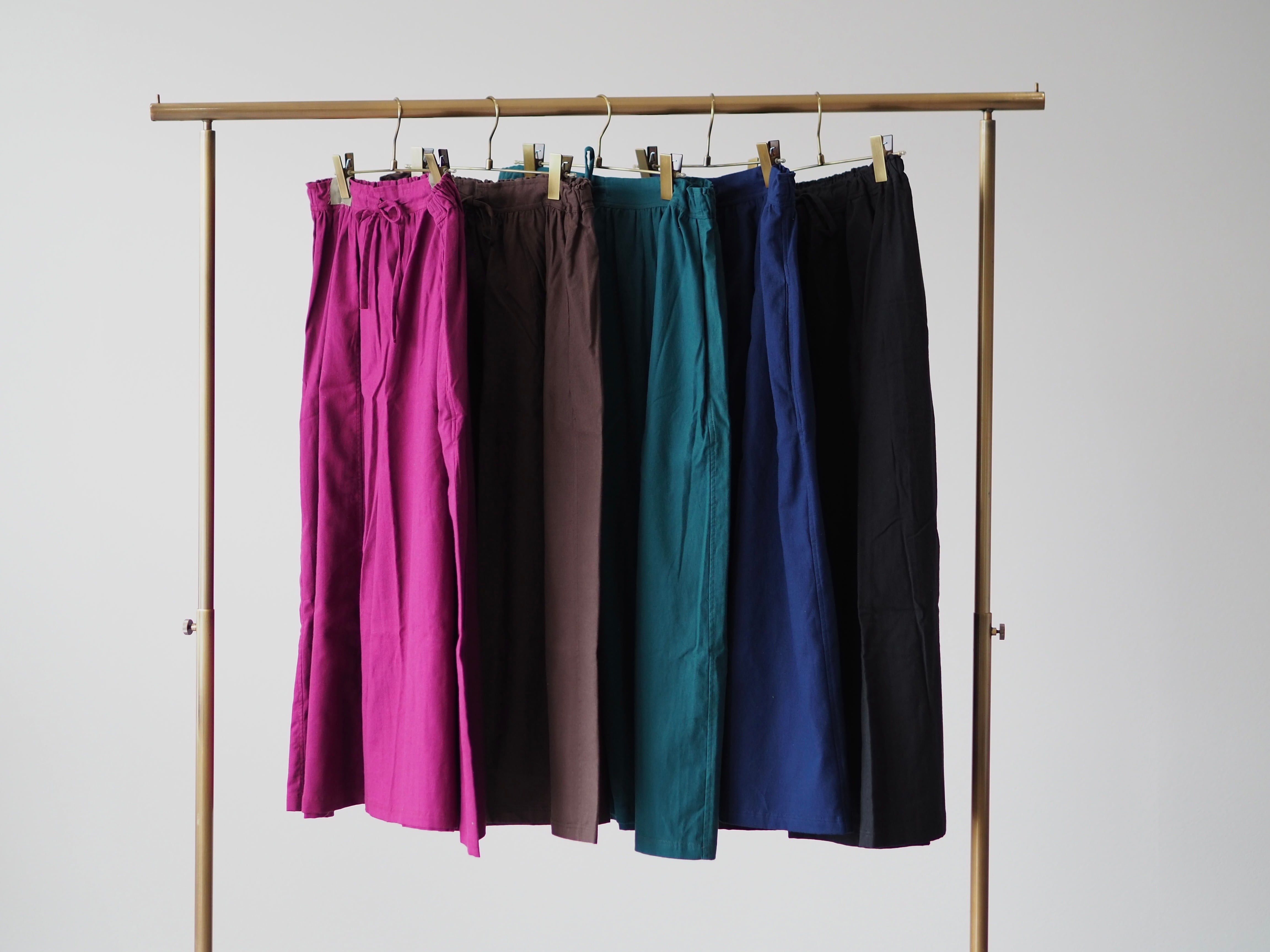 こちらのスカートと同素材のトップスは秋口〜春先まで、色違いでのリピートが多い定番人気のアイテムです。やわらかな肌触りで厚ぼったくなく軽い着心地の為、春夏はガーゼのトップスがお好きな方に、とてもご好評頂いています。