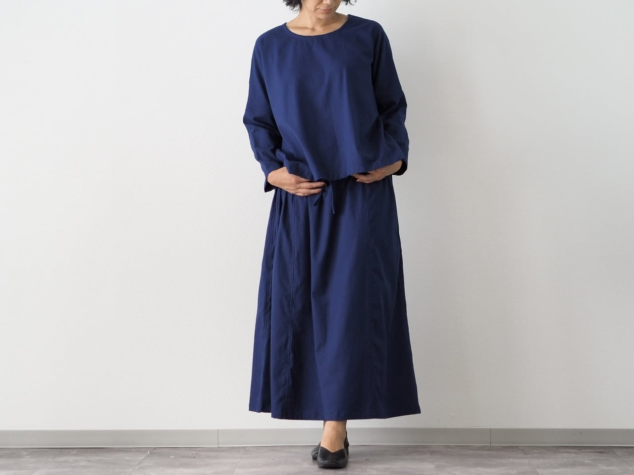 ⚫︎同色でワンピースのように着たり、上下別カラーを合わせても◎