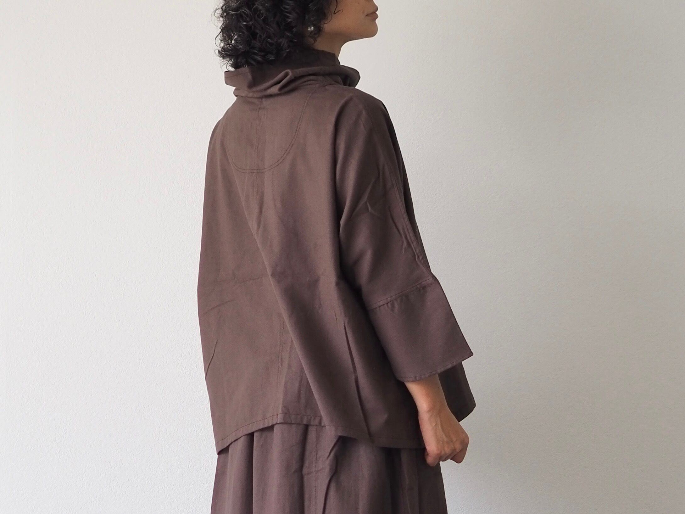 四枚はぎで程よいボリュームに仕上げていますので、スッキリとしたシルエットで着られます。