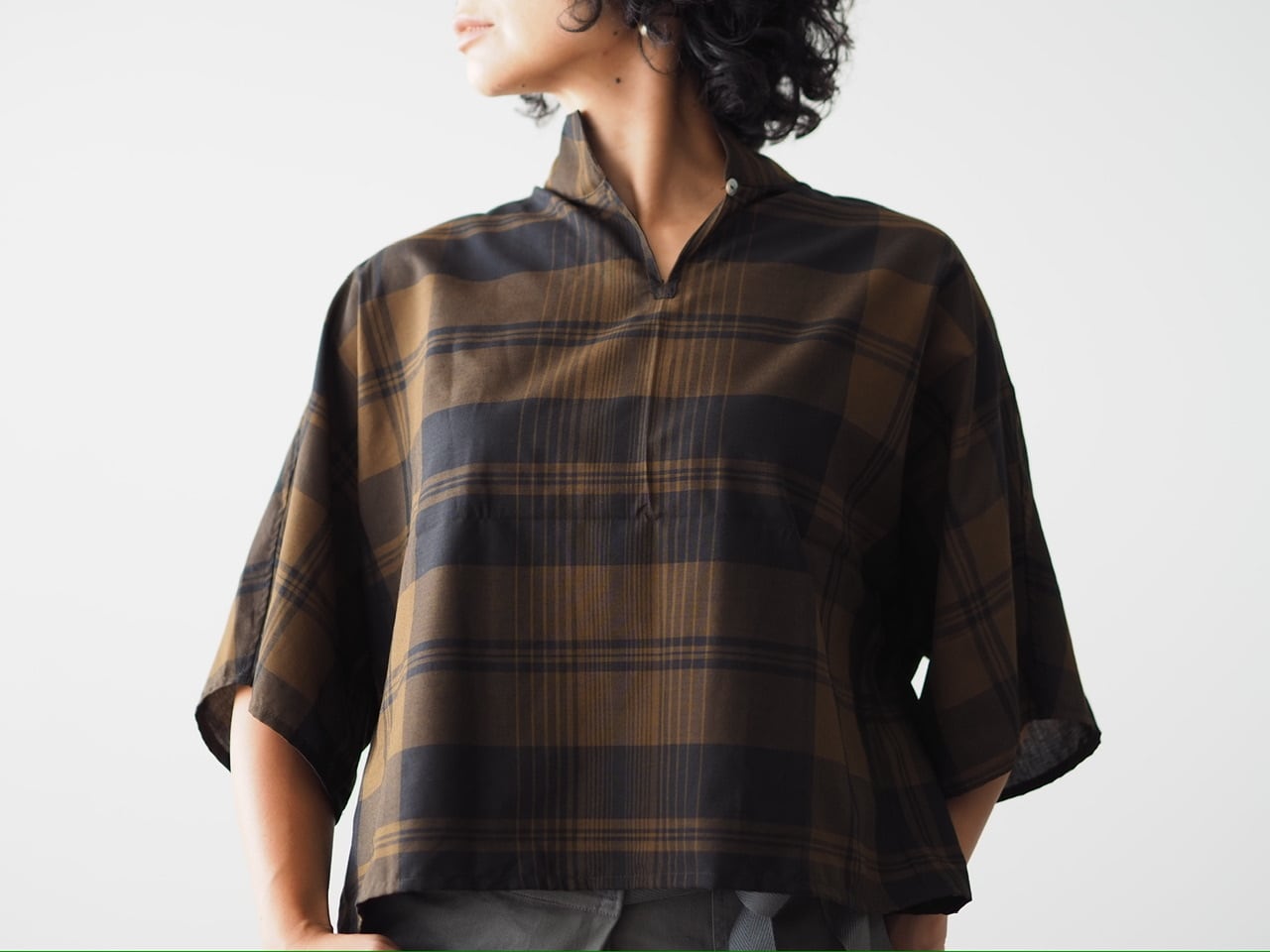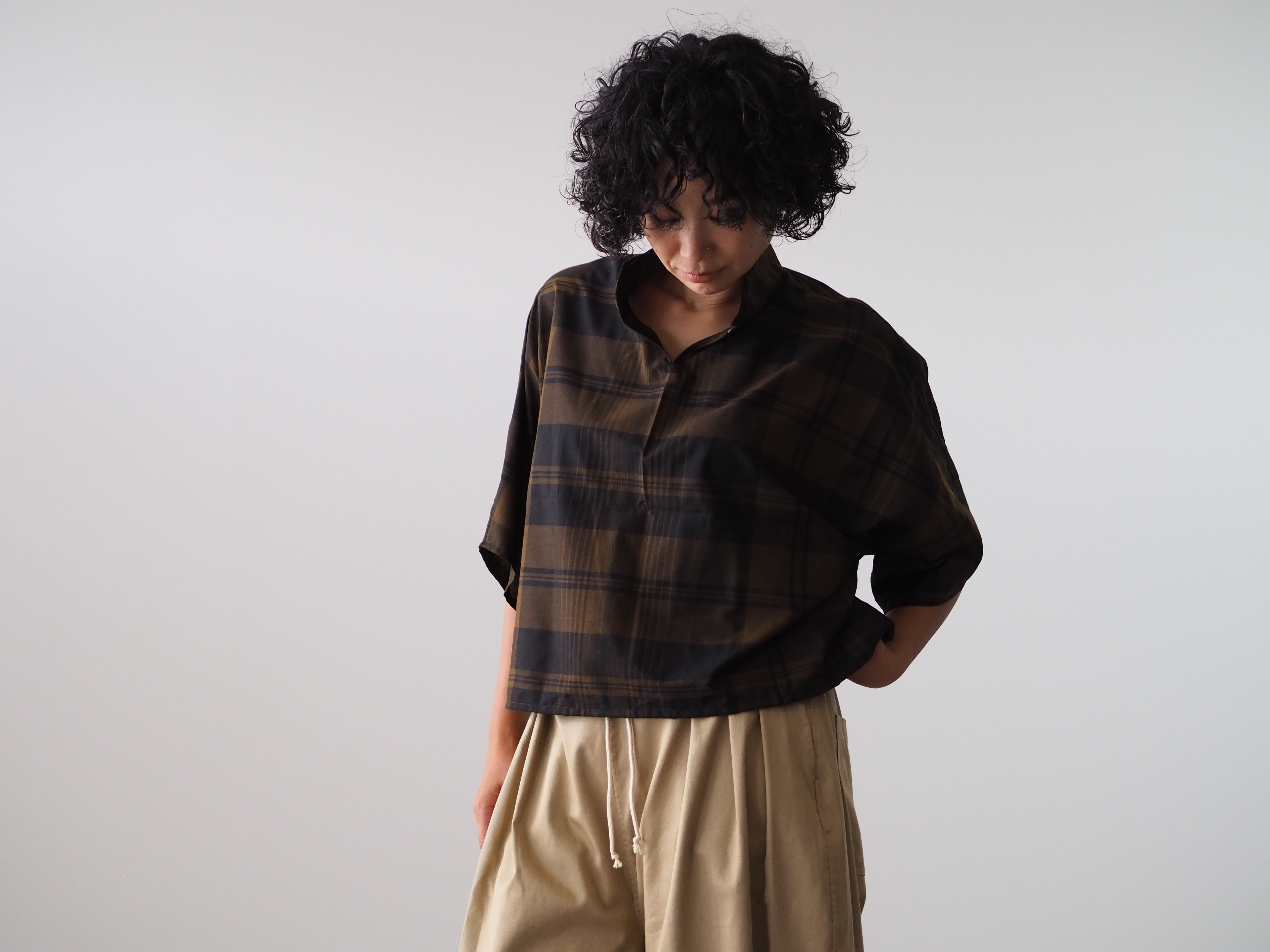 首元、肩回りも、程よく抜け感があり、シンプルながら全体にバランス良く着られます。大きめの襟はボタン留めでも着られます。