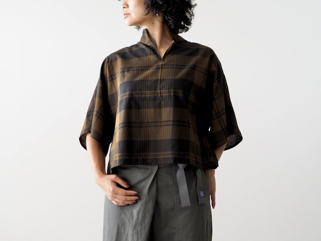 首元、肩回りも、程よく抜け感があり、シンプルながら全体にバランス良く着られます。大きめの襟はボタン留めでも着られます。