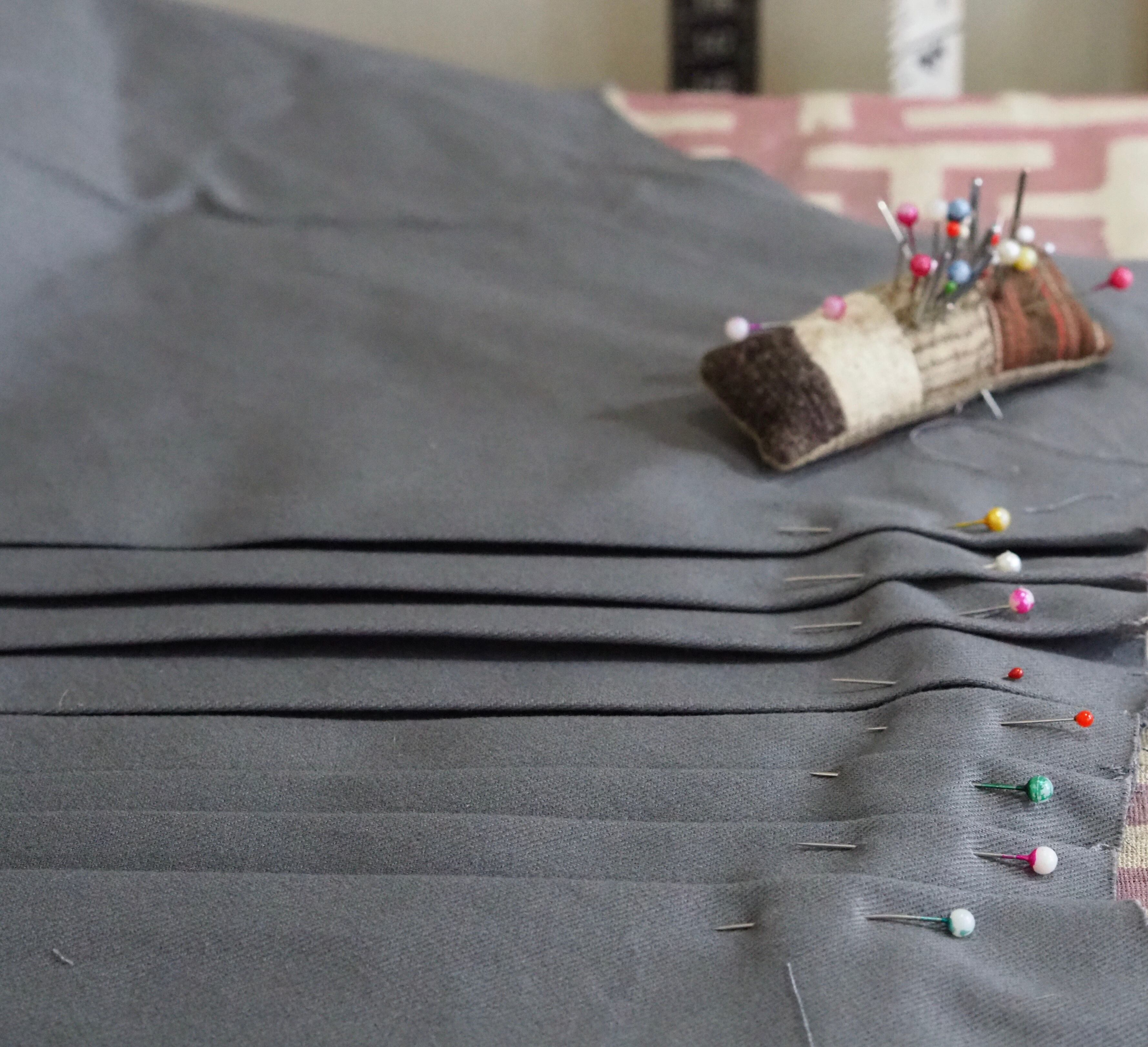 中央に何本もタックを寄せて、ミシンステッチで押さえています。