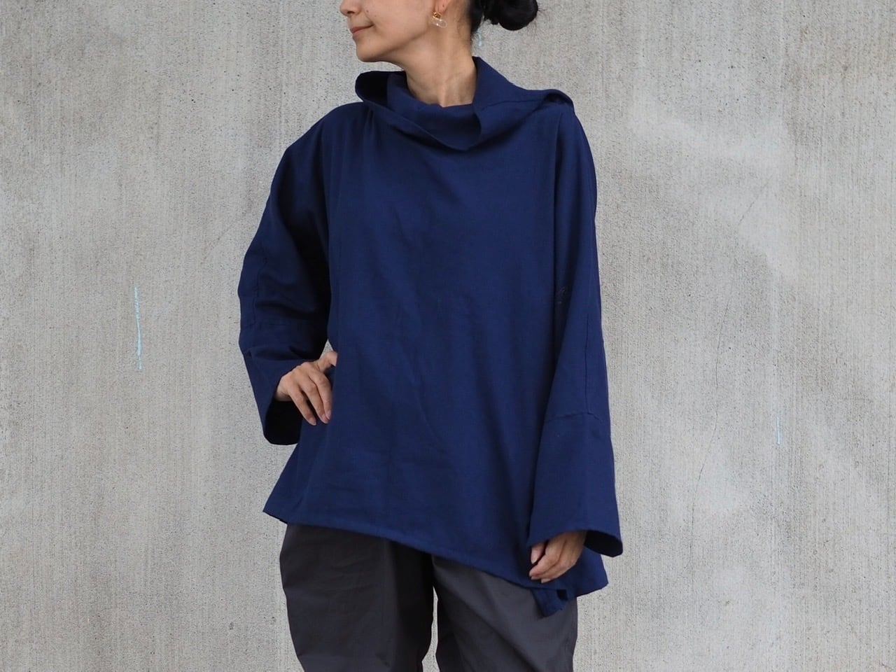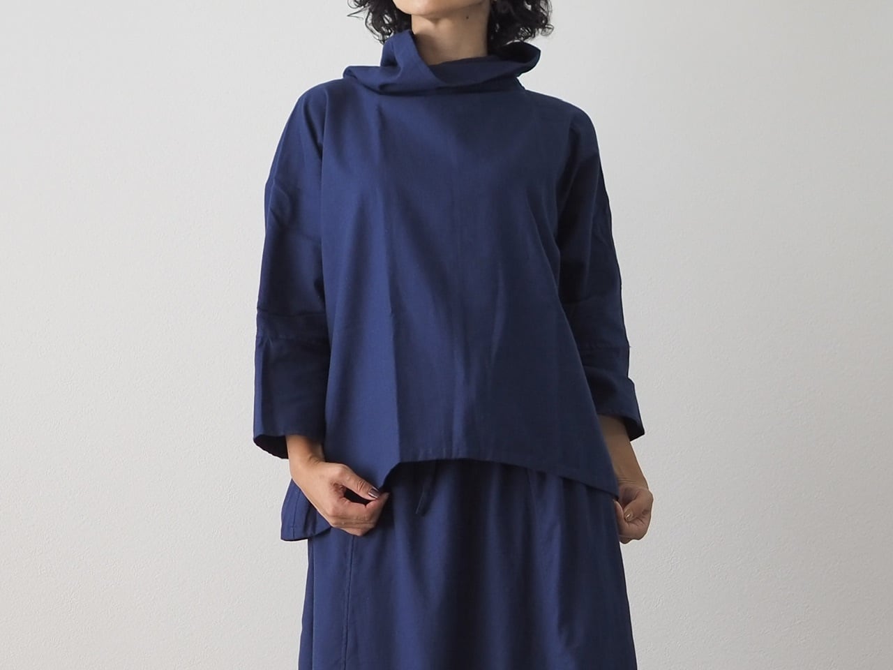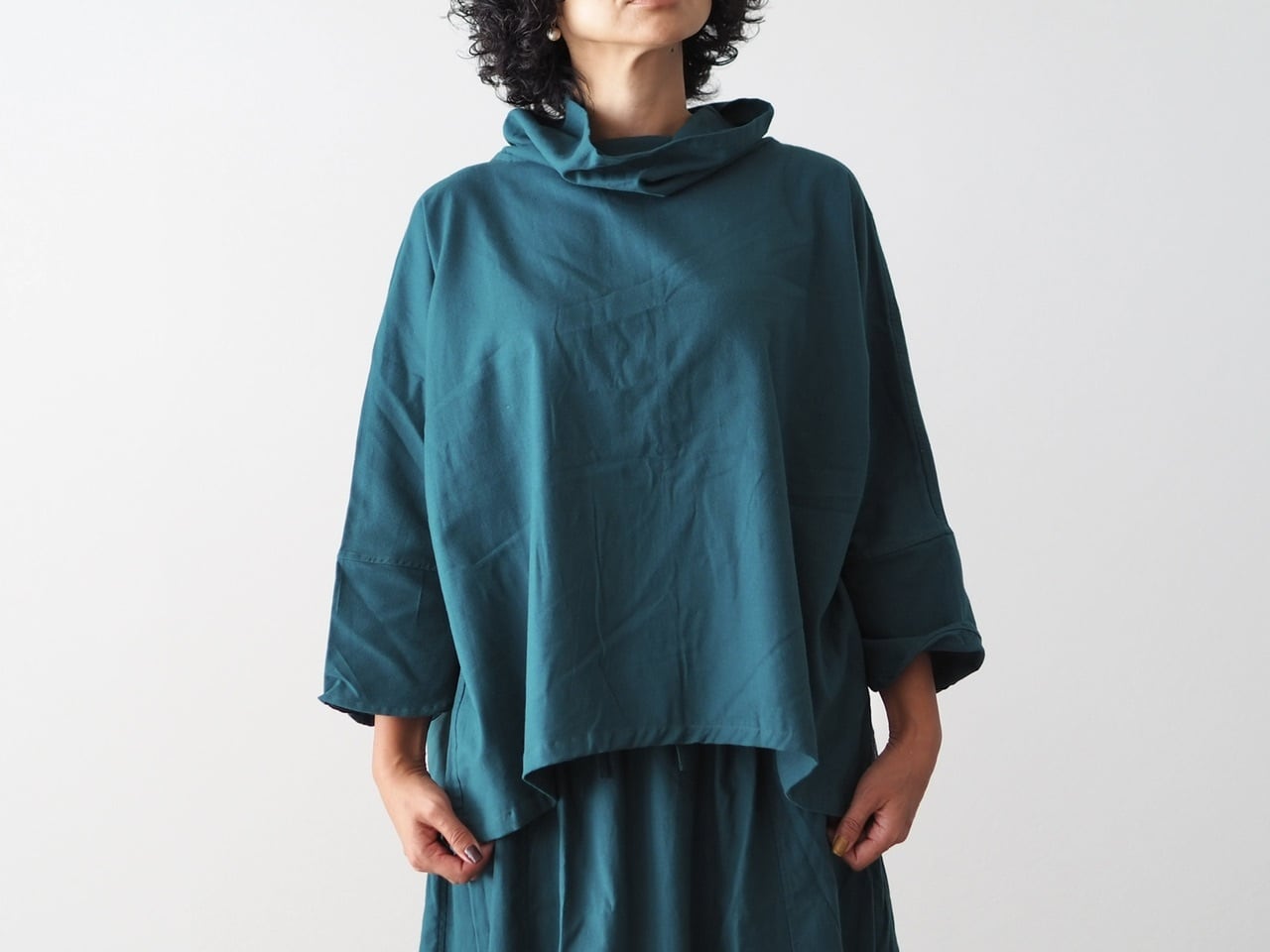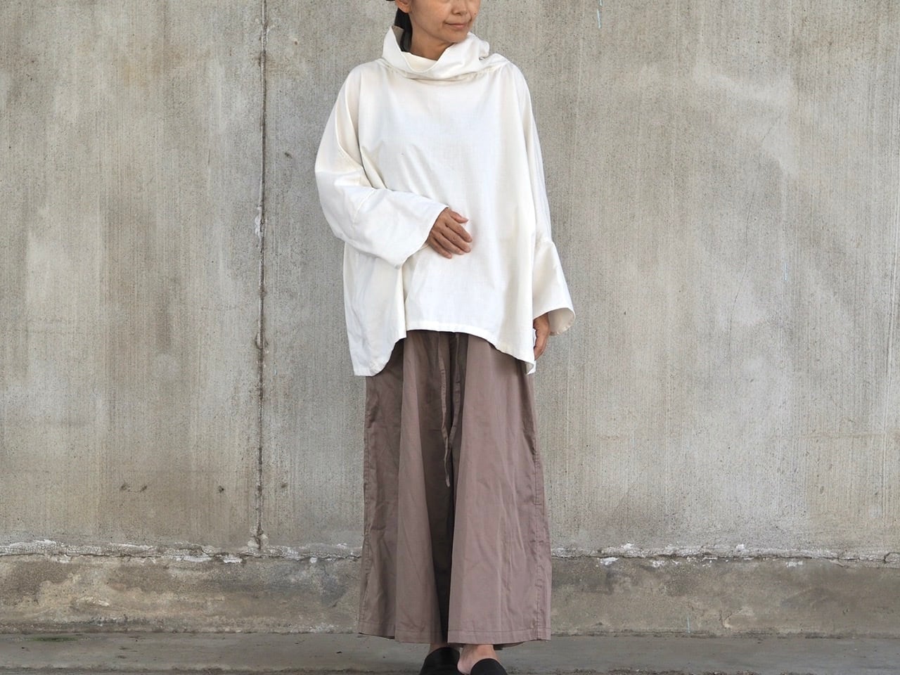 裾下がりのゆったりとしたシルエットで、寒くなってきたら重ね着も楽しめます。