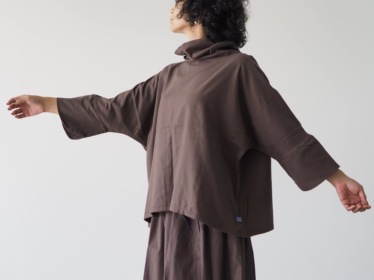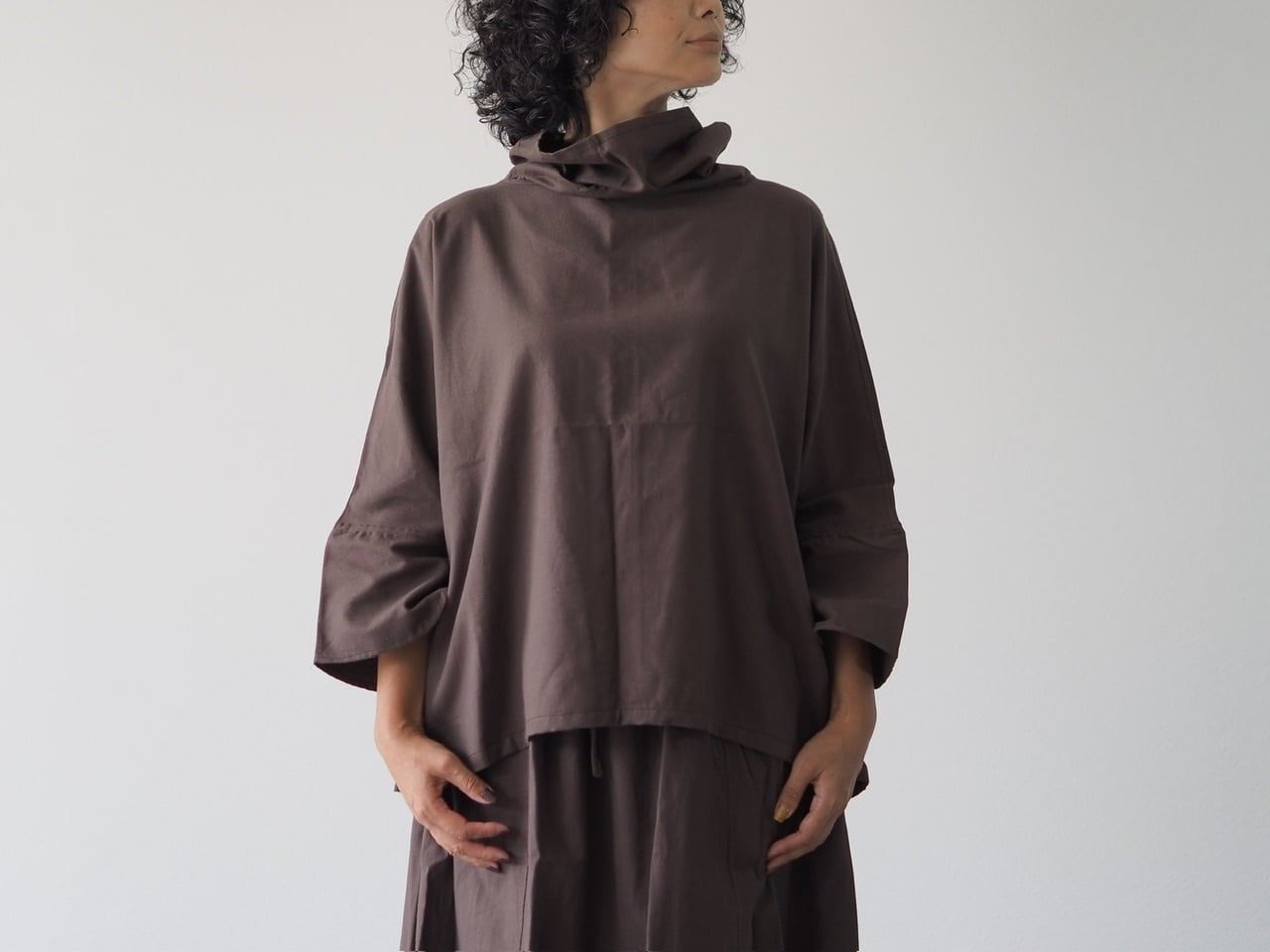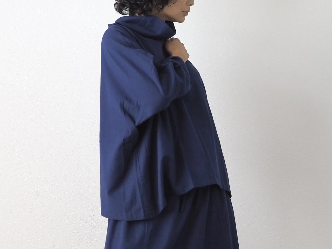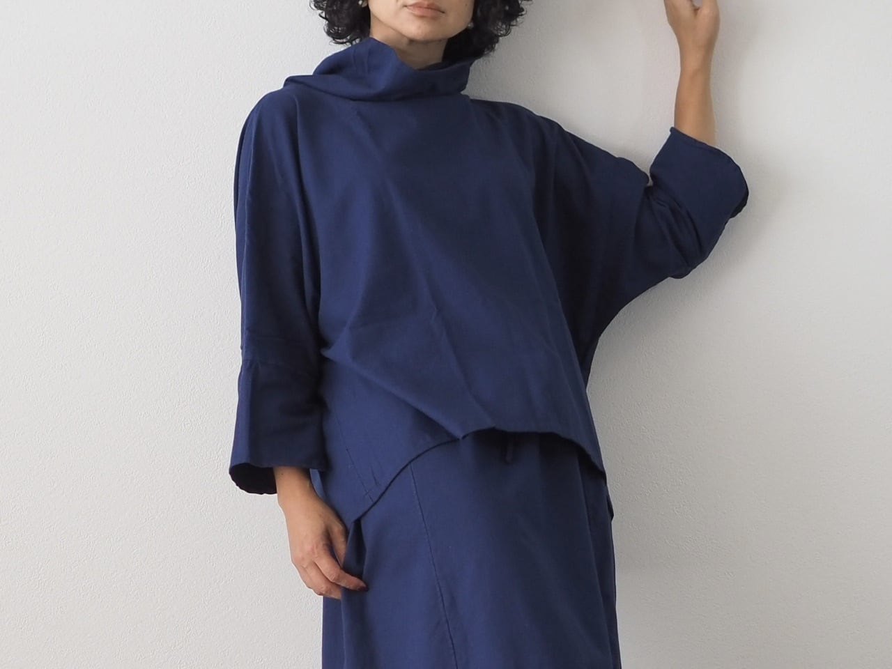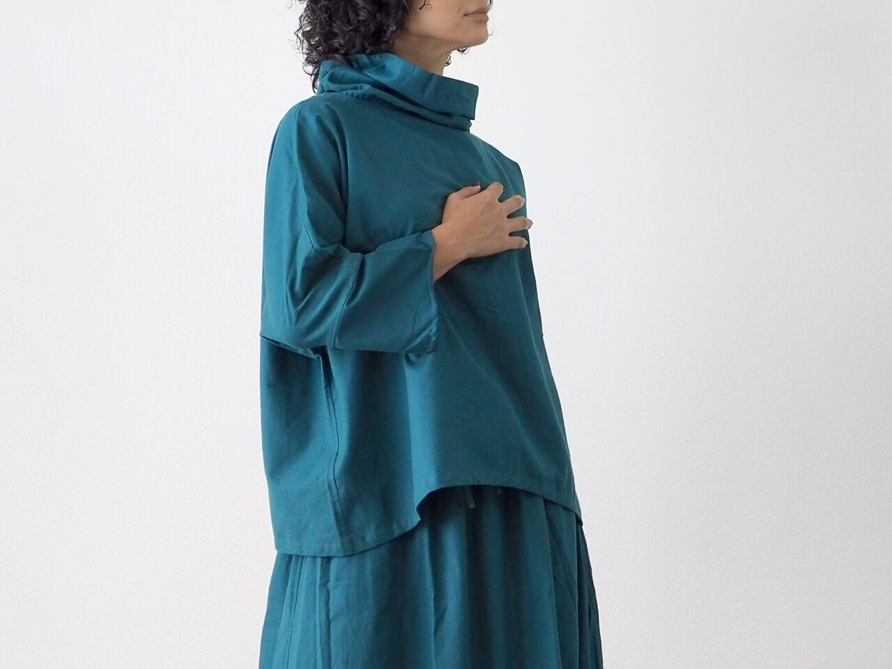 裾下がりのゆったりとしたシルエットで、寒くなってきたら重ね着も楽しめます。