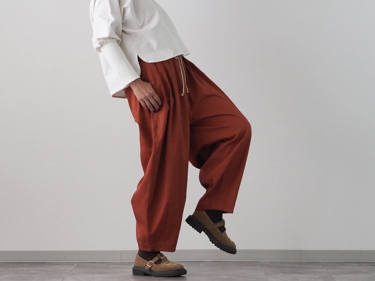 オールシーズン着用できる膨らみのあるシルエットが綺麗なサーカスパンツ。
