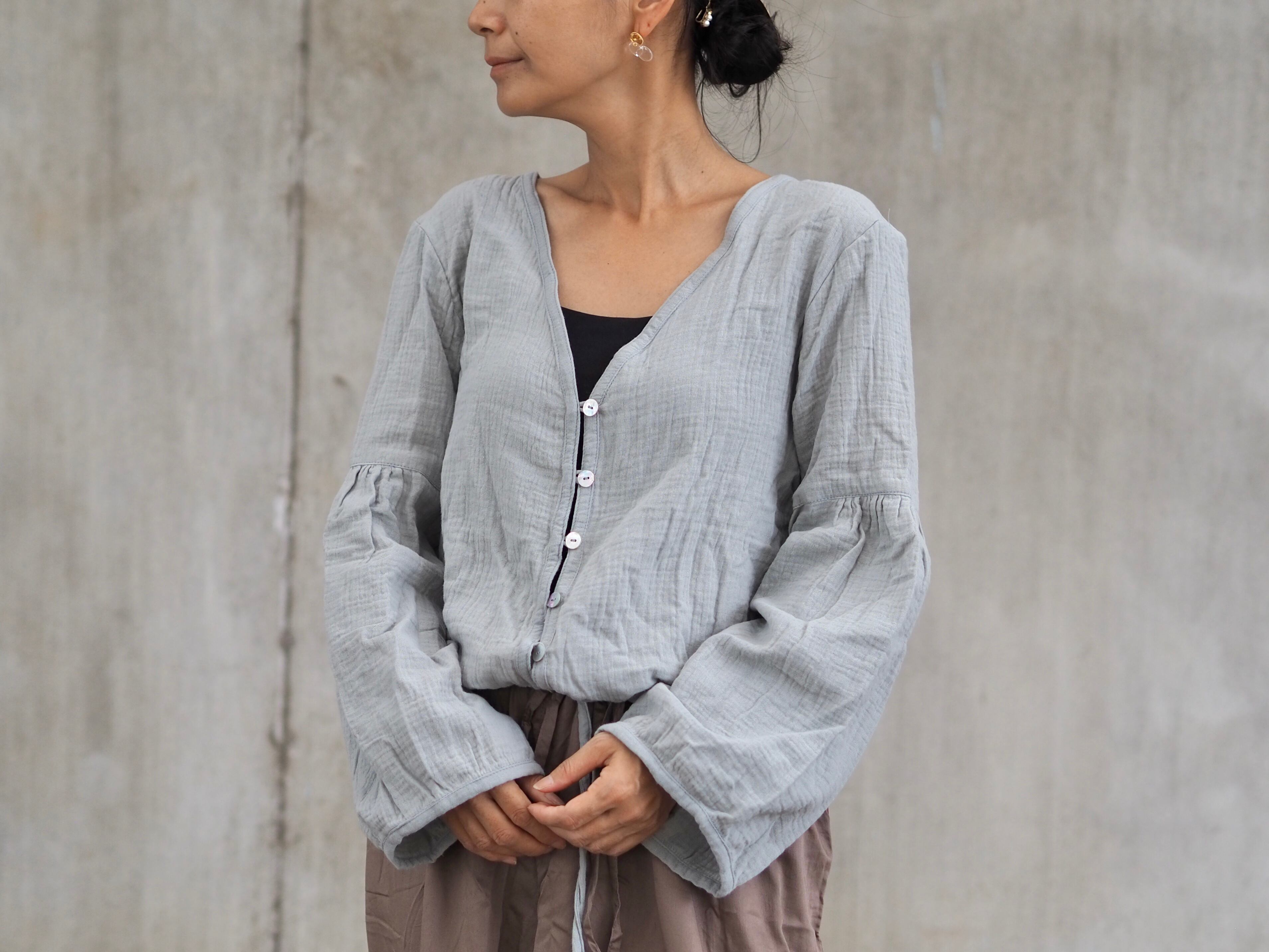【新色/ライトグレー】ダブルガーゼのバルーン袖カーディガン
