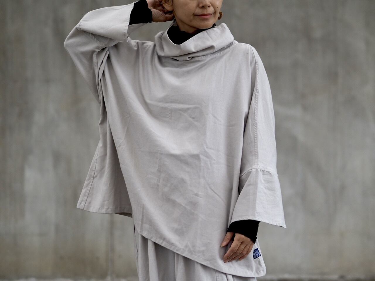 《2024/新色ライトグレー》ふわっと起毛コットン/ポンチョ風トップス