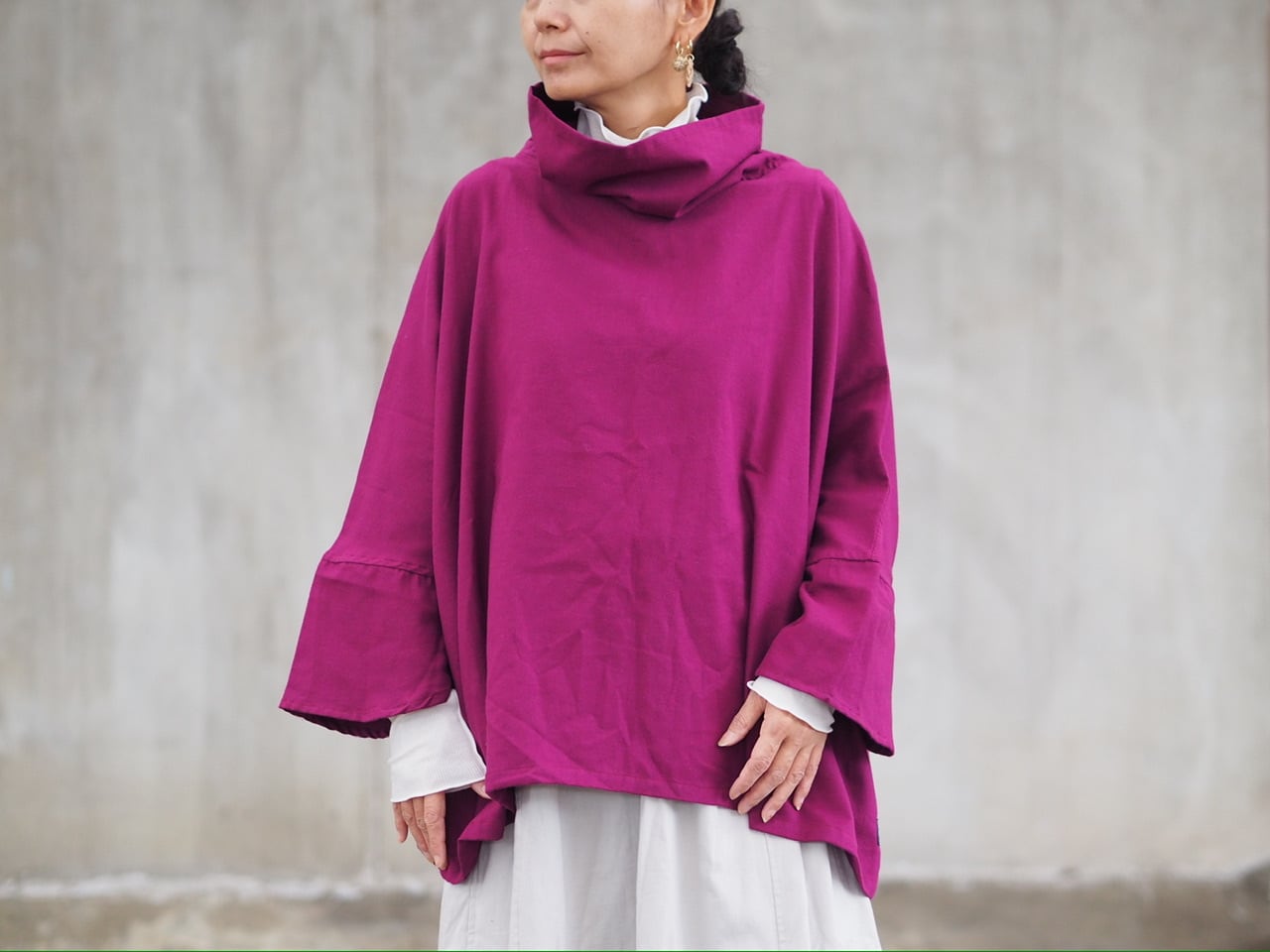 《2024/新色ブーゲンビリア》ふわっと起毛コットン/ポンチョ風トップス