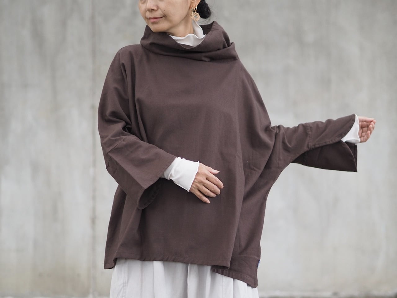 《2024/新色ブラウン》ふわっと起毛コットン/ポンチョ風トップス