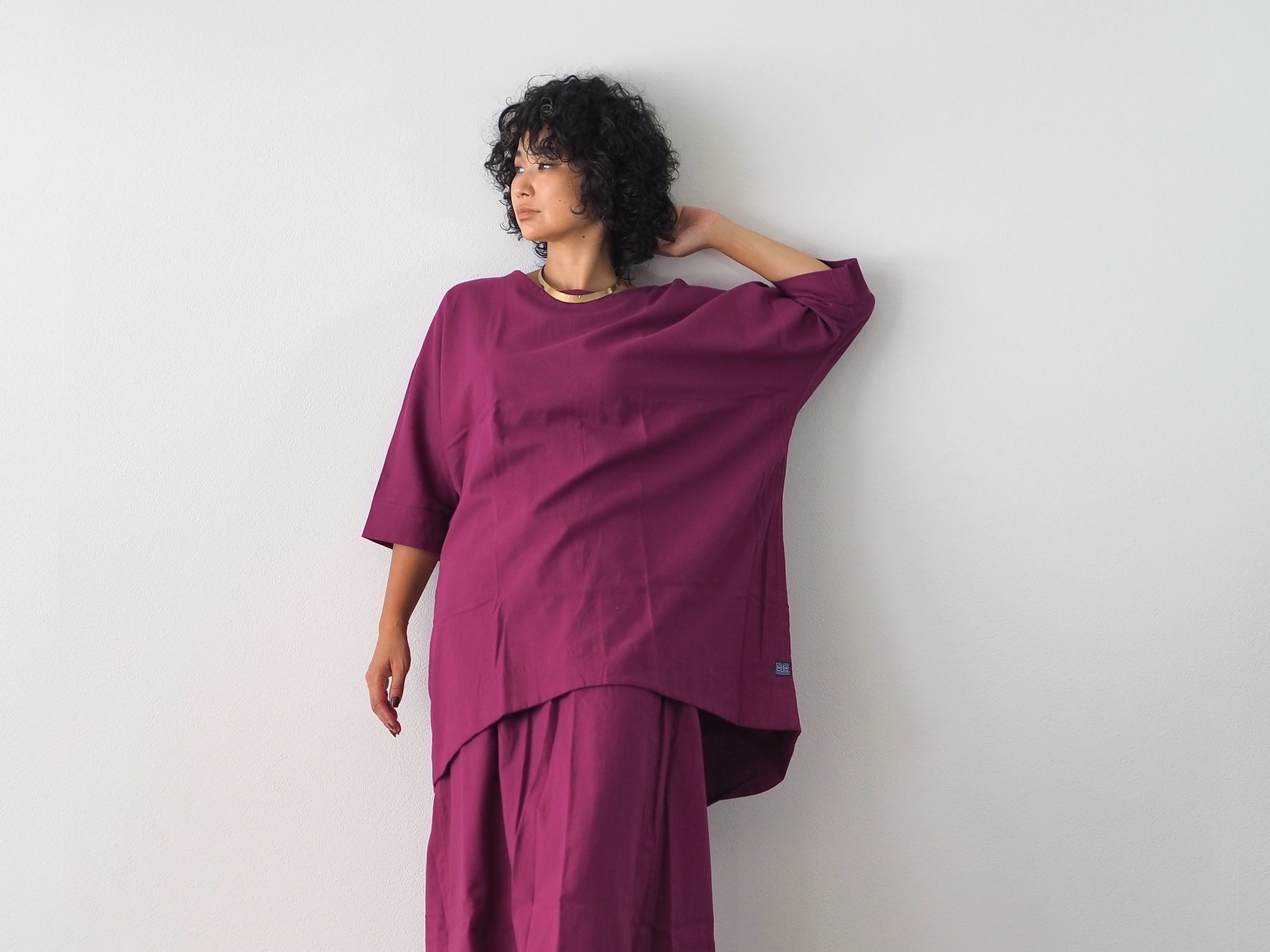 ワイドパンツやサーカスパンツなど、ボリュームのあるボトムスとの組み合わせてゆったりと着られます。