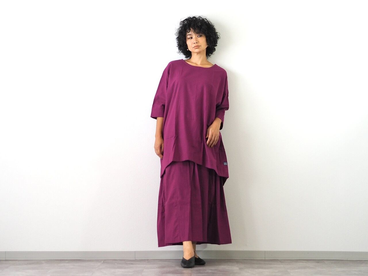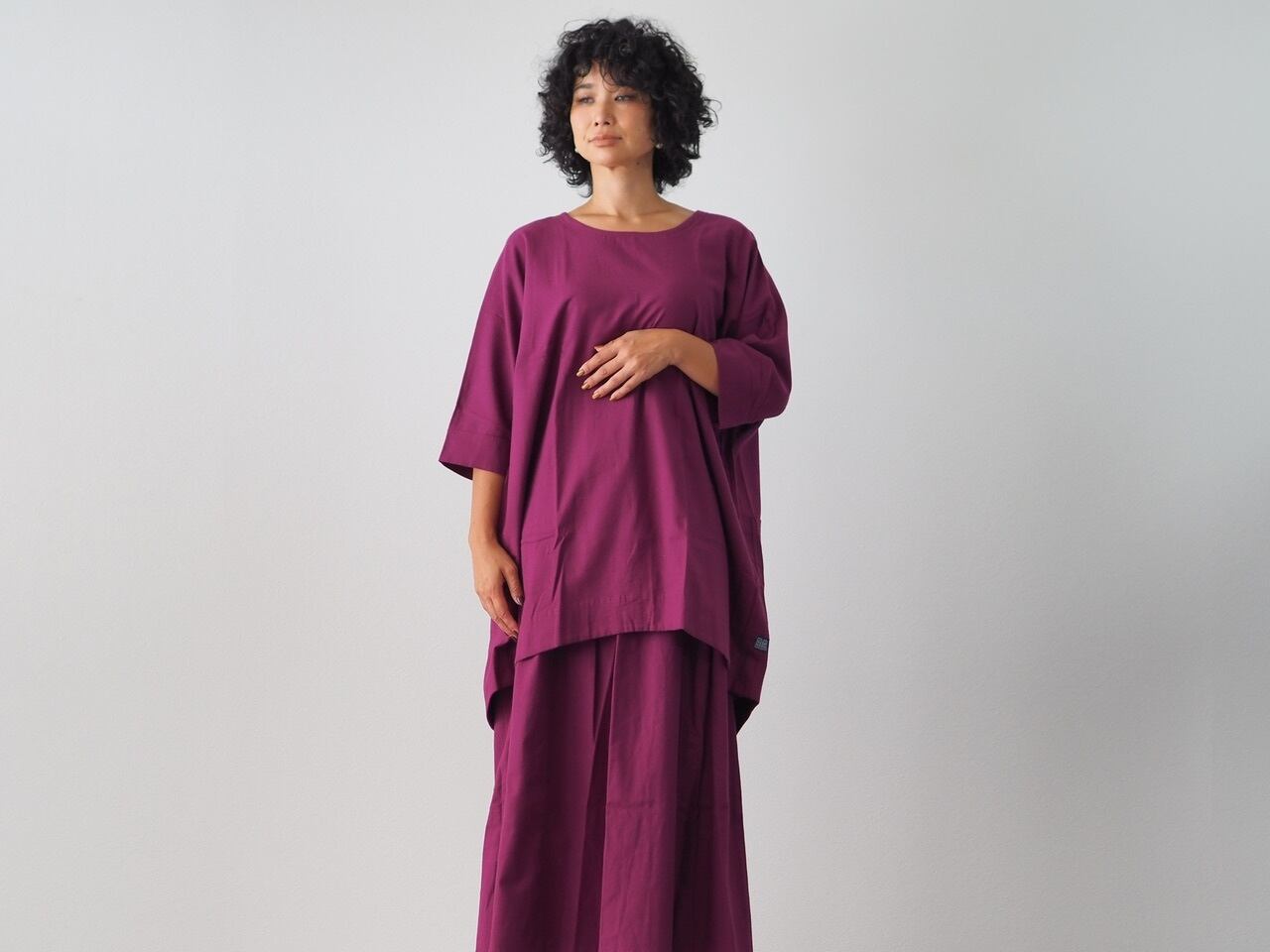ゆったりと身体を包む、長めのチュニックシャツ。