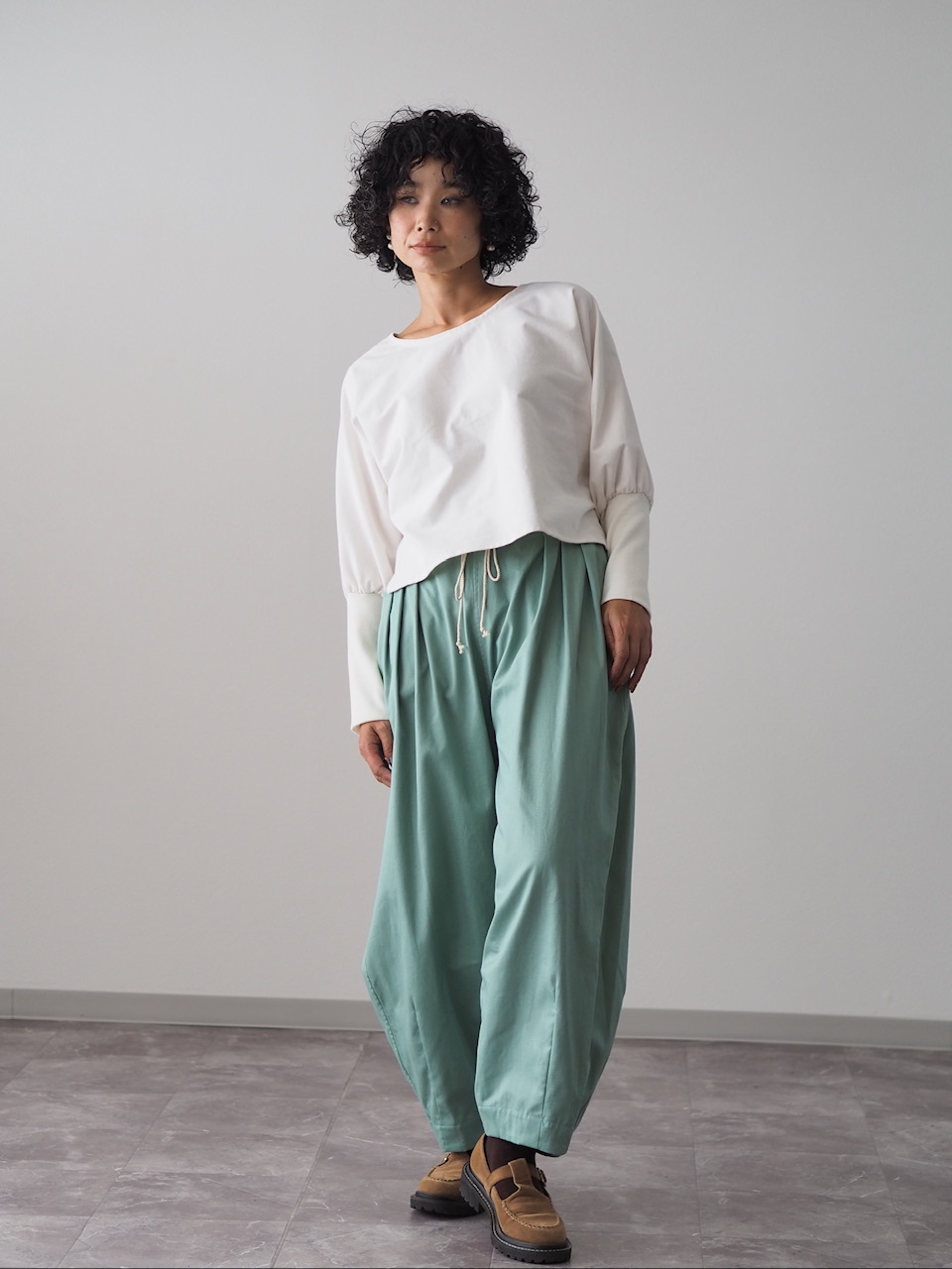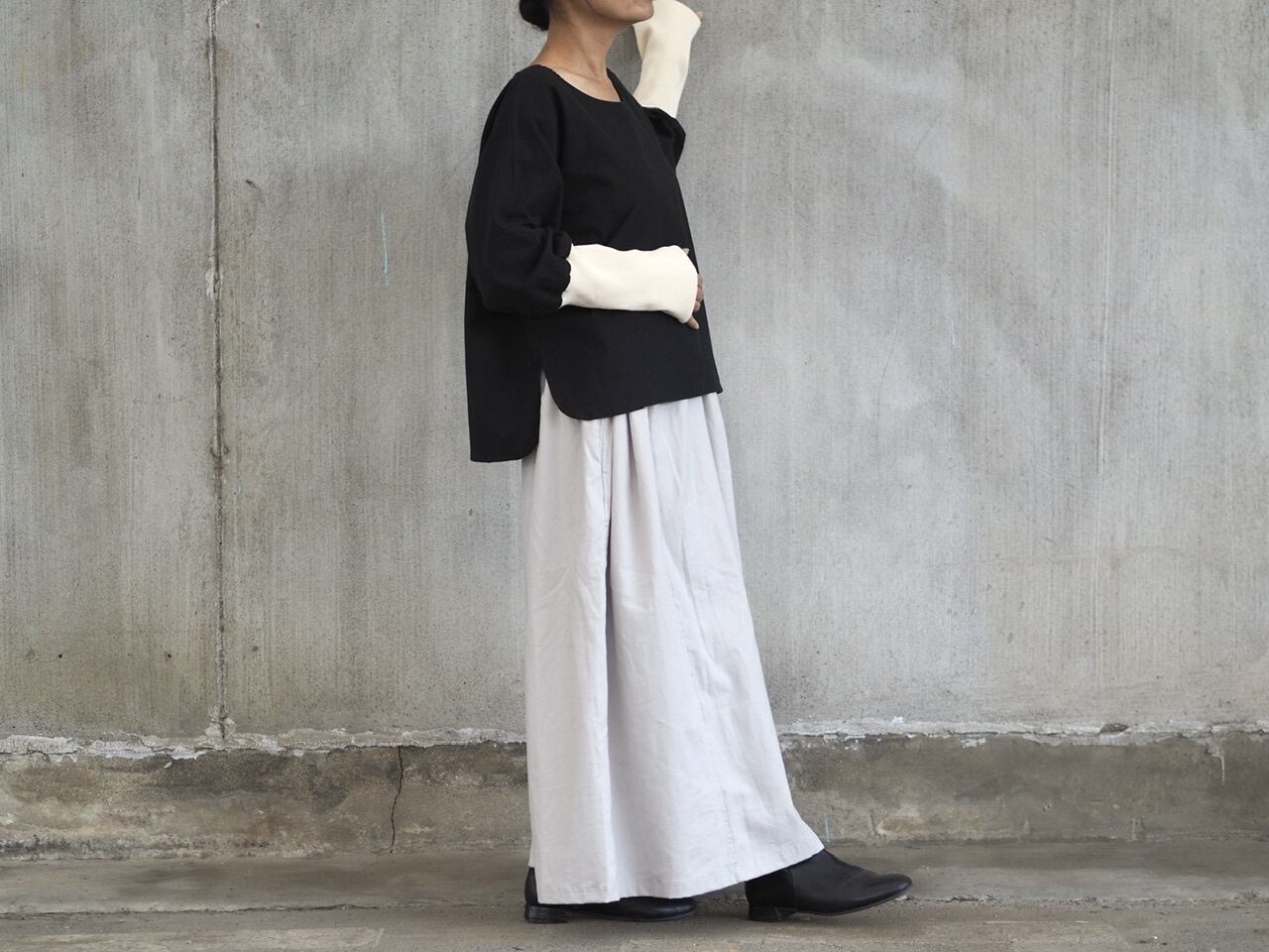ワイドパンツやロングスカート等と合わせて、バランス良く着られます。