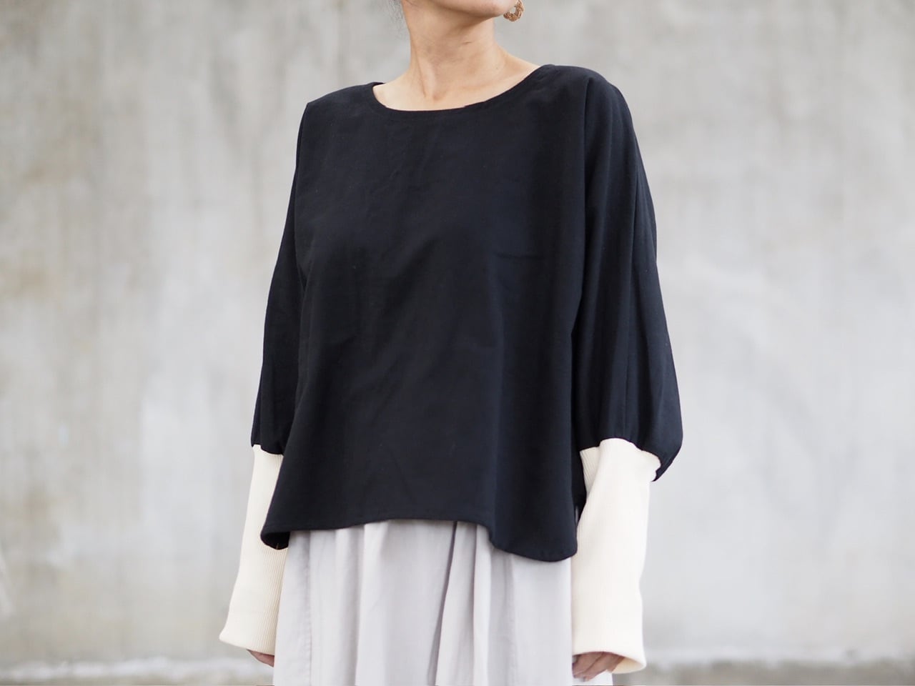 ドルマンスリーブでゆったりとした着心地。